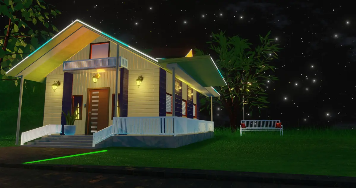 House dimensions X : 13,6 meters, Y : 14,7 meters, Z : 6,71 meters.