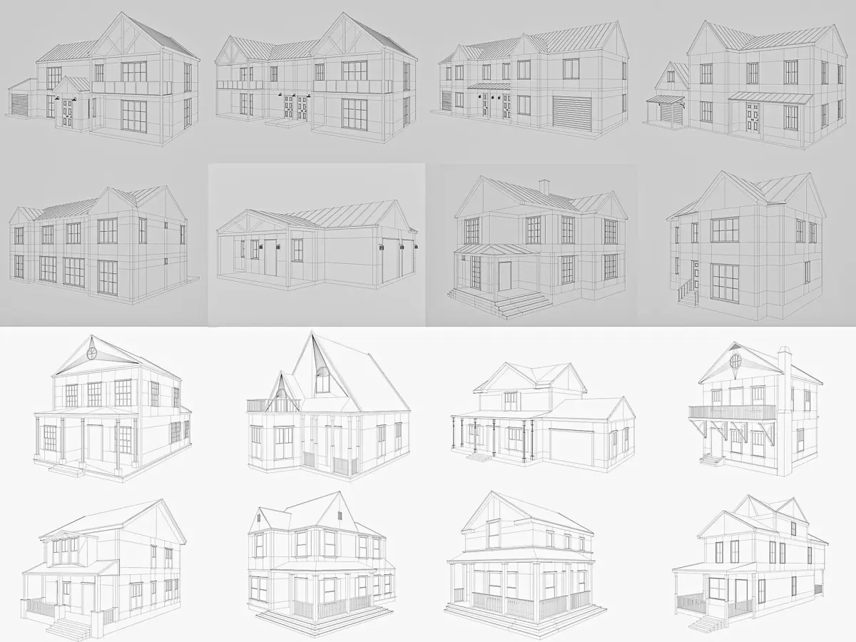 16 low poly exterior house