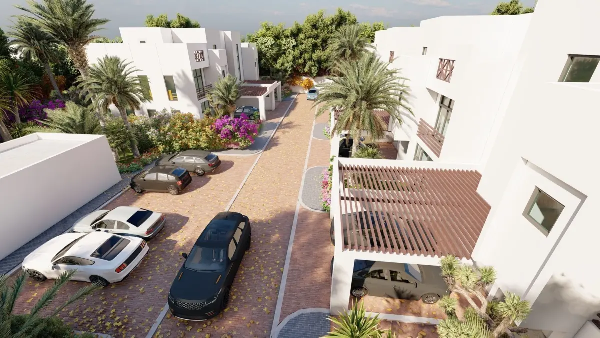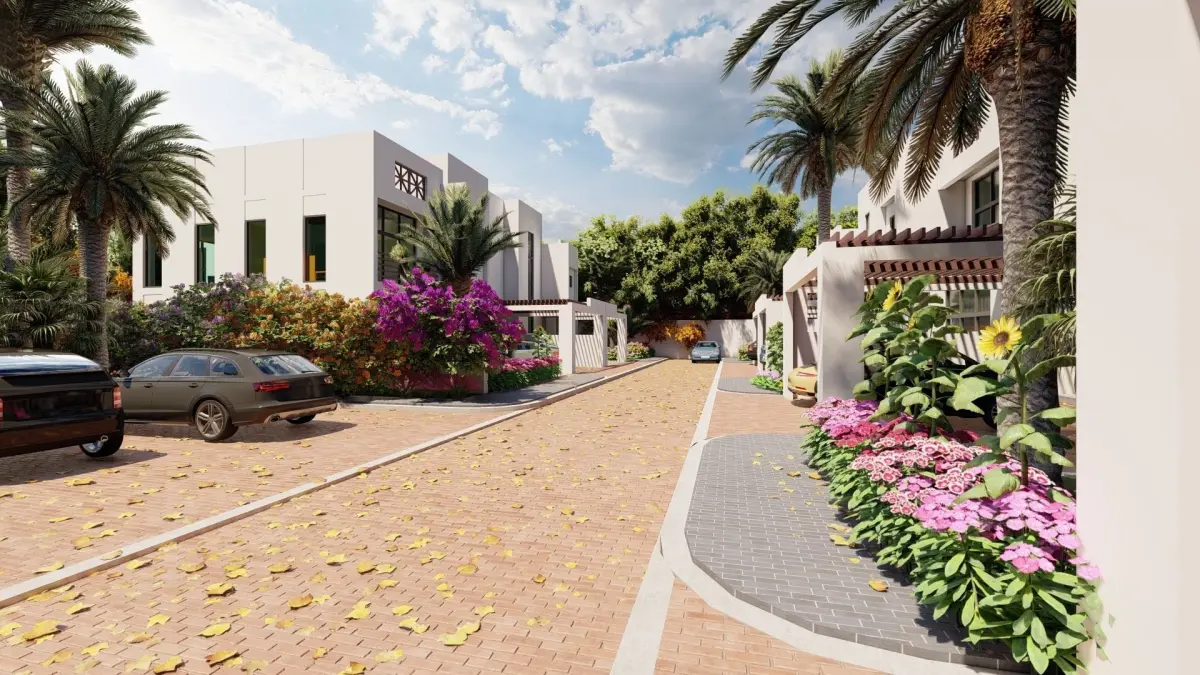 Minimum plot dimensions 53.1m x 62mTotal built-up area2156.8 sqmCompromises of Seven Villas.Components:Ground Floor:• Front Garden• Garage for 2 cars• Majlis• Dining Area• Living Area• Fry Kitchen• Main Kitchen• Guest Room• Courtyard• Powder Room
