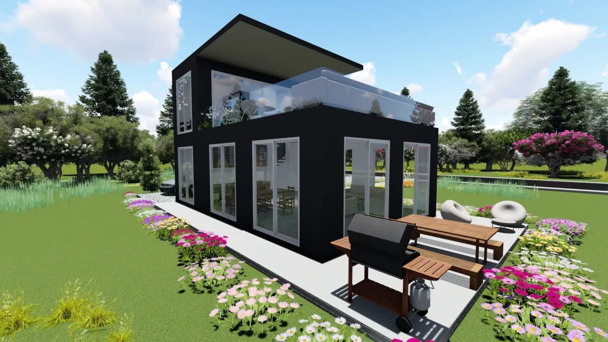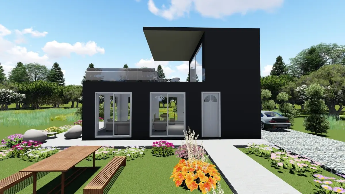 The project has 2 floors, in ground floor is 60 m2 with one room, bathroom, livingroom with kitchen and firsth floor is one room, bathroom and big terrace which is half closed with the roof.Total of building has 78 m2 living area and 42 m2 terrace area in green.and in the corner of 2 roads.The project is made by archicad and for render and animation used lumion.For some of furniture i used archicad and some lumion furnitures i used.