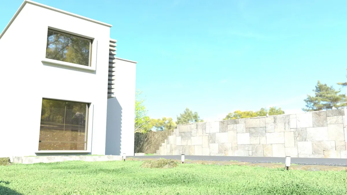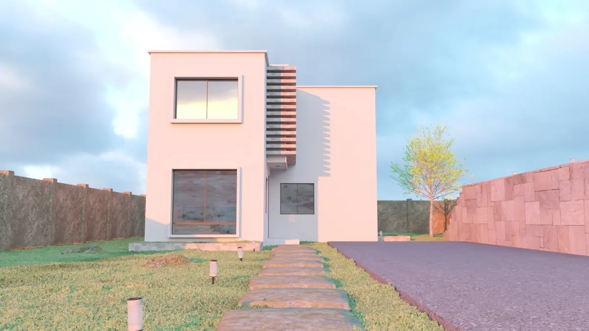 Exterior de casa con materiales foto realistas, cuenta con 6 luces naturales diferentes, texturas 2k-4k,creado en 3dsMax 2017 y renderizado con V-ray 3.6, cuenta con cuartos, escalera y puertas, todas las paredes son movibles por si deseas crear otro cuarto o algo por el estilo. Todo se encuentra dento de un Set proyect folder.