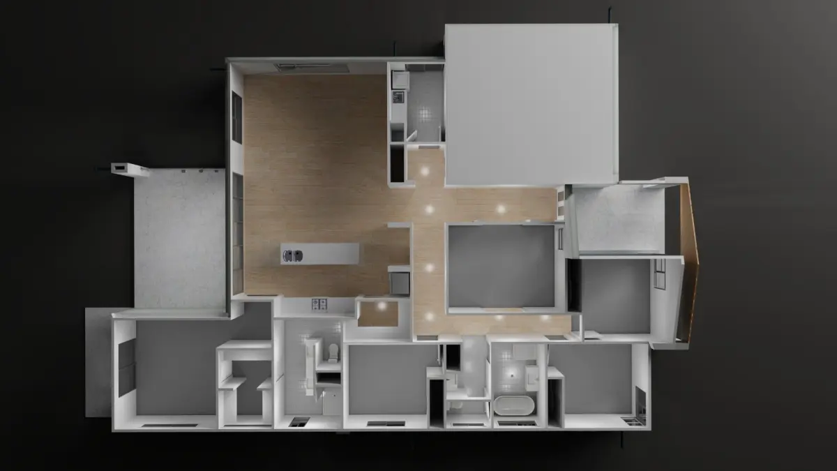 NOTE: Blender file only.NOTE: Please read listed file types, as requests will not be provided.Complete 4 Bedroom house covering 259 square meters, complete with...RumpusDiningIsland bench kitchenBathroomEn-suite Double garageCan be used as a prop for interior or exterior scenes.