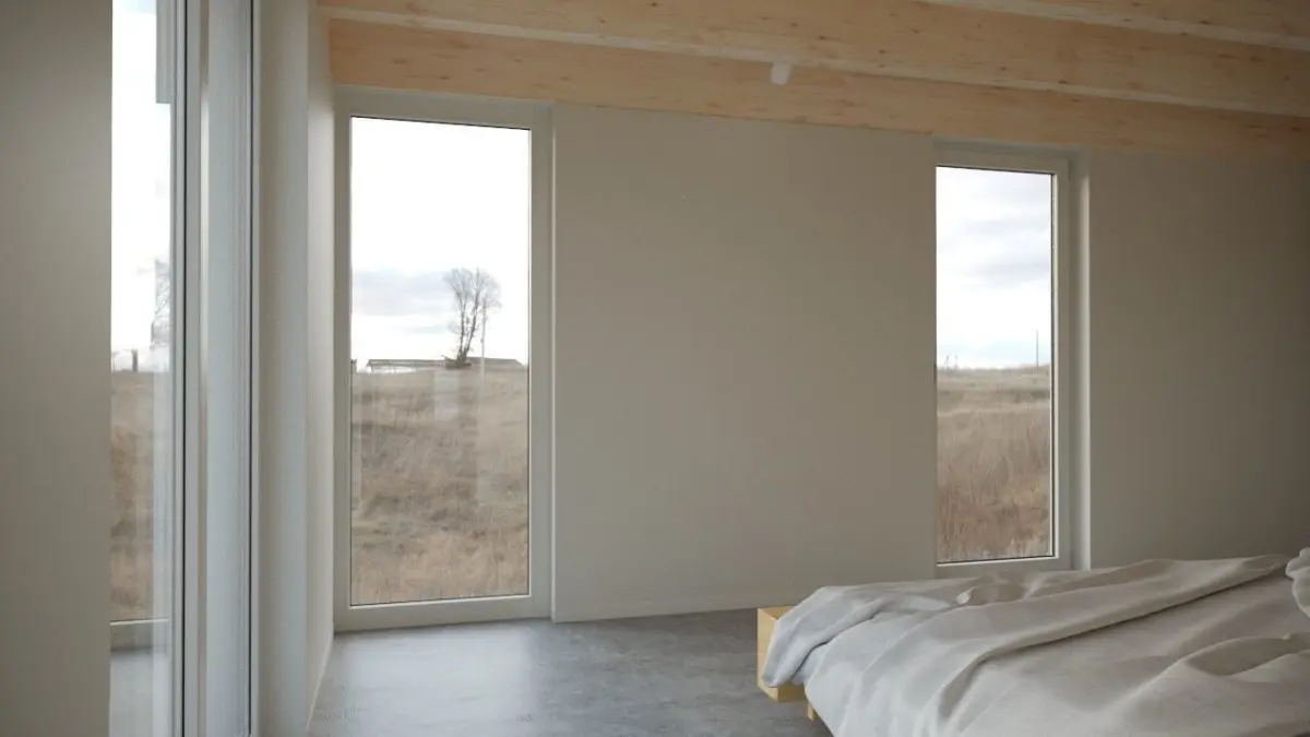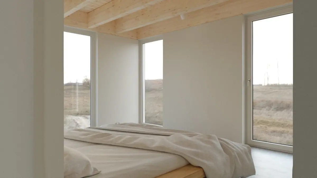 The Canadian architect Natalie Dionne has completed a forest retreat in southeastern Quebec, which is raised up on stilts to meet the level of the rocky landscape. I really like the design and created the intertor scene in 3D