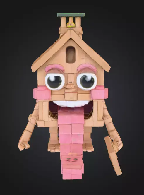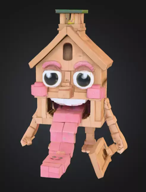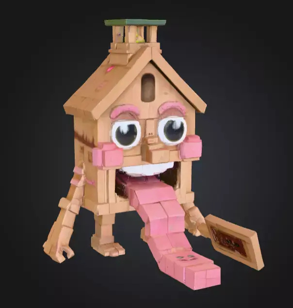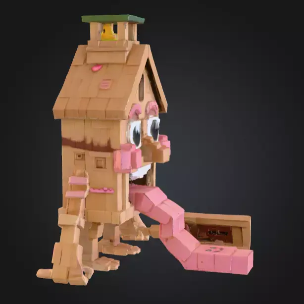 The House Monster with a Tongue Slide is a playful and imaginative 3D model that blends architecture with creature-like fantasy design. This quirky creation looks like a small house or hut brought to life as a monster, featuring exaggerated eyes, crooked details, and most notably, a giant tongue extending outward as a functional slide.