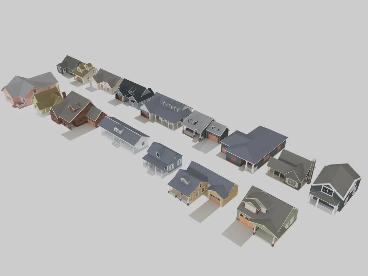 16 low poly houses only exterior models