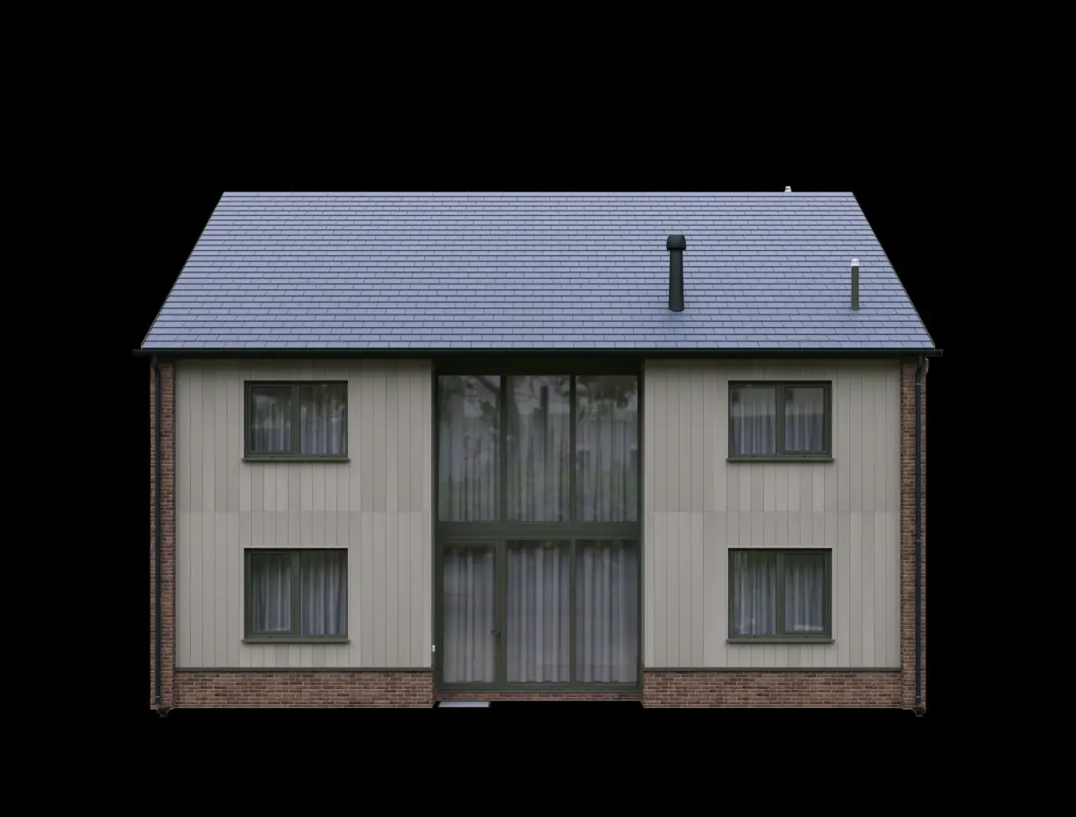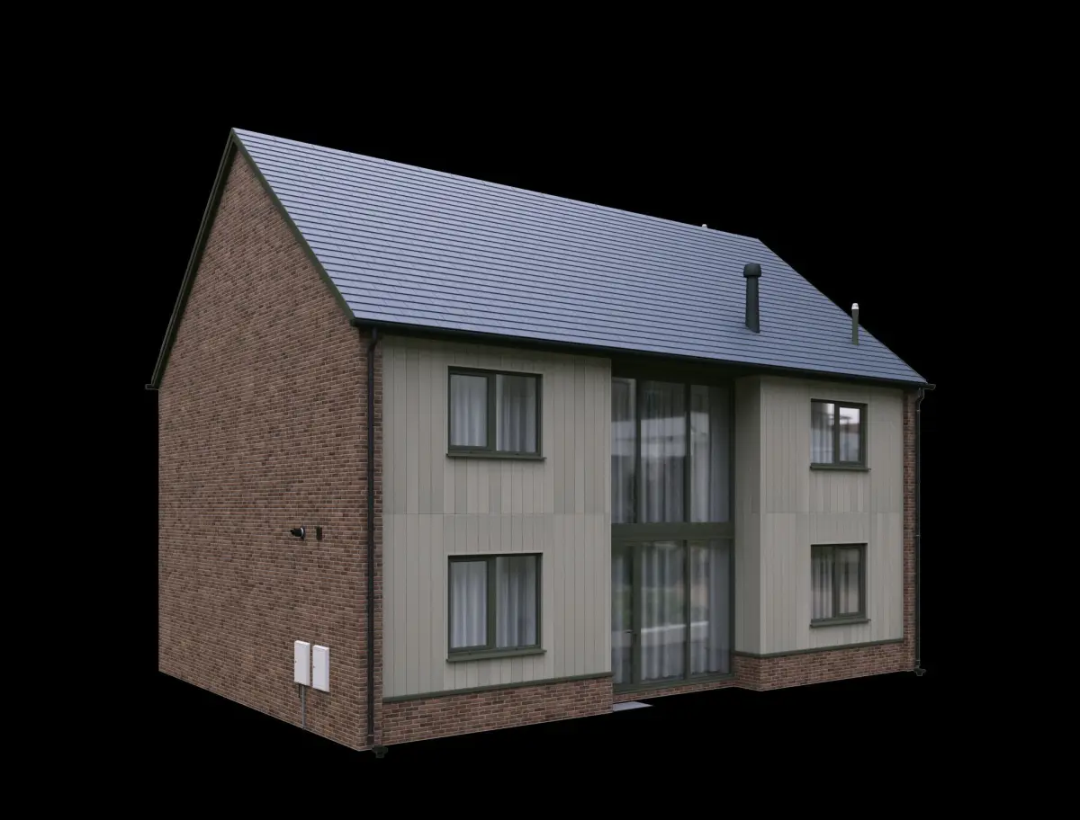 Two storey private house, made of bricks and fiber cement boards, UK style.