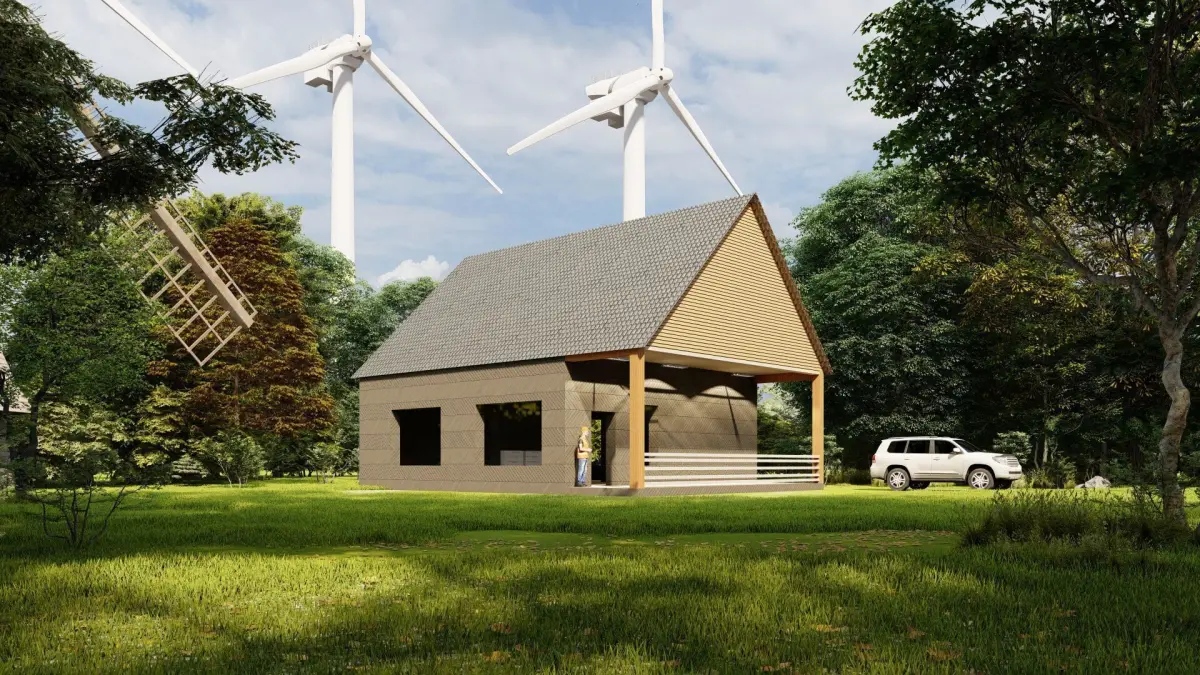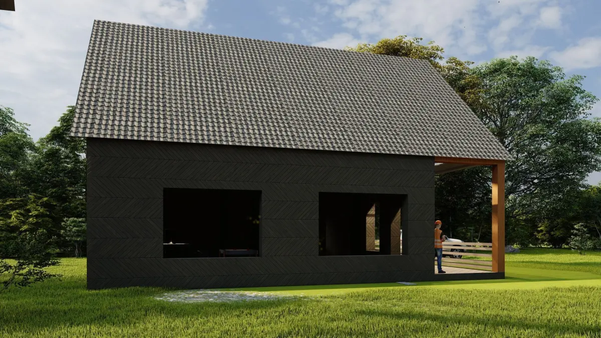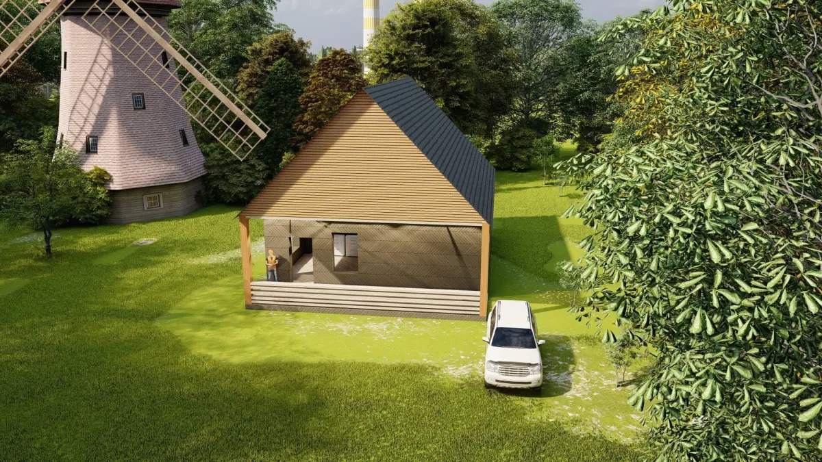 Version of a one-story house, on stage located in a forest area, suitable for a country holiday or living with a family, spacious entrance hall and three spacious rooms, you can make the layout of your dream.