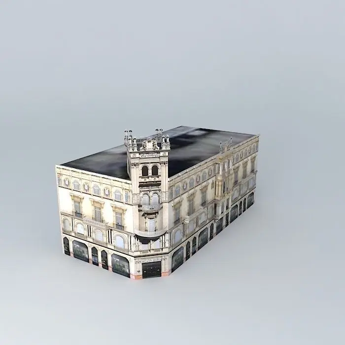 This 3D model was originally created with Sketchup 13 and then converted to all other 3D formats. Native format is .skp 3dsmax scene is 3ds Max 2016 version, rendered with Vray 3.00 Barcelona building designed by Francesc Roca i Simó in 1910. Framed within the Catalan Modernist style or Art Nouveau prevailing at the time, was inaugurated as the House of Spain January 4, 1914, he was the principal founder member José María Buyo. For its uniqueness and architectural value it is a protected Grade 1b-A NOTE TO THE EQUIPMENT GE building: The 29/04/10 Move the model to compensate for the rearrangement of the satellite image. PLEASE STOP