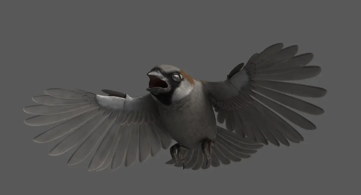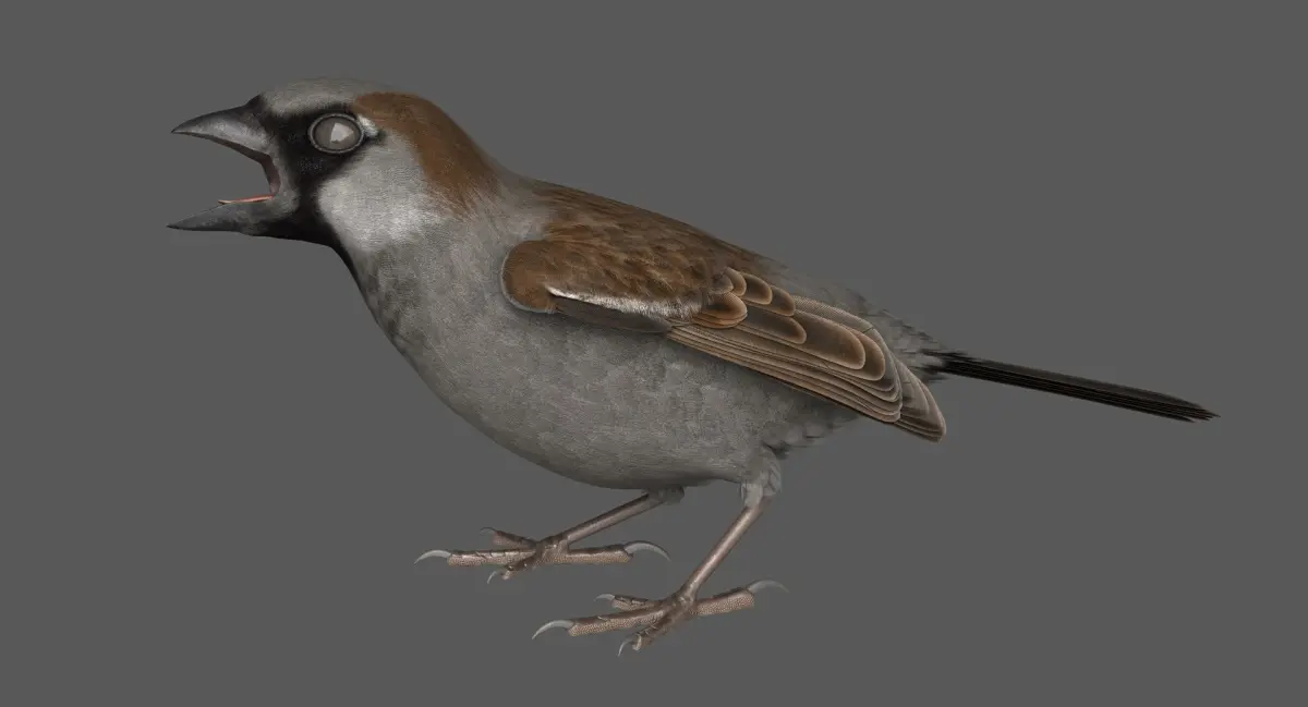 Animated 3D model of House Sparrow (Passer domesticus), created in Maya 2016.