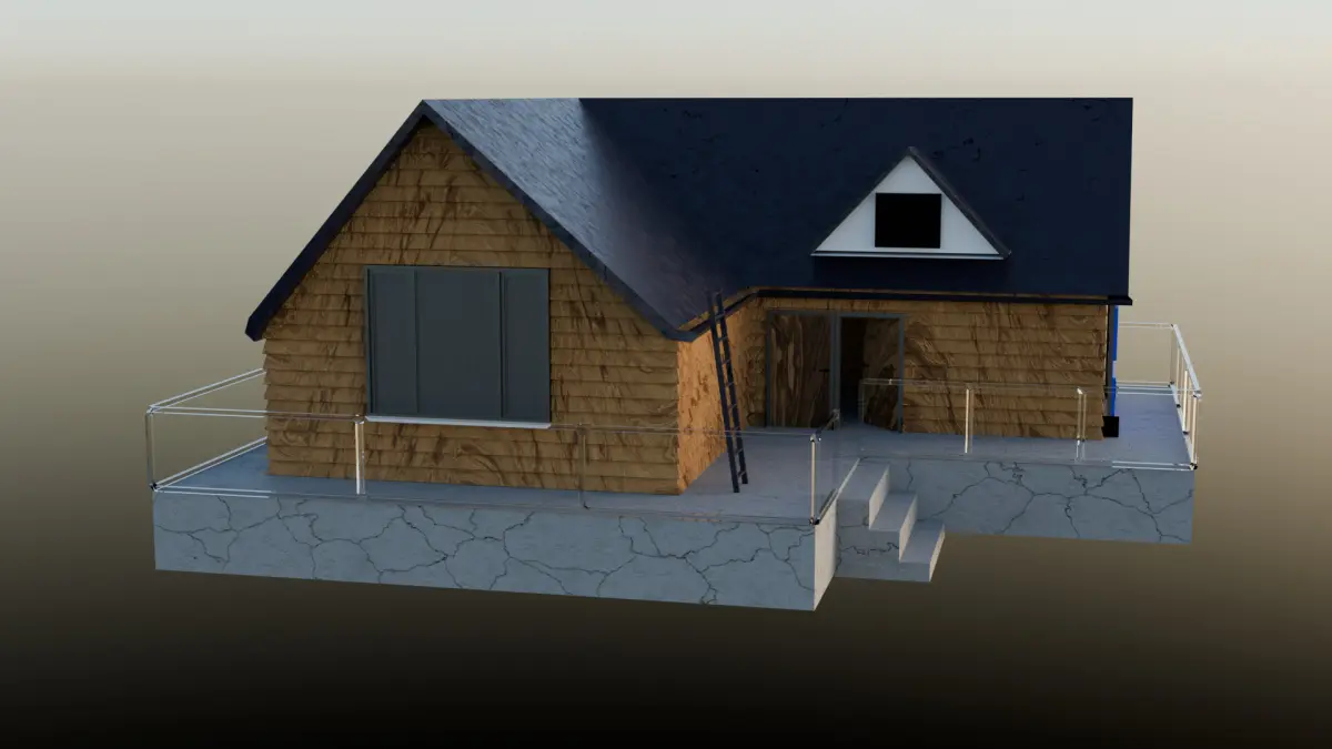 House with blue roofs and wooden walls and concrete flooring Low-poly 3D model