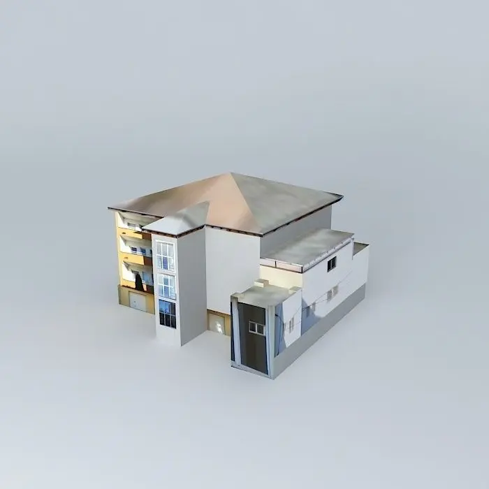 This 3D model was originally created with Sketchup 8 and then converted to all other 3D formats. Native format is .skp 3dsmax scene is 3ds Max 2016 version, rendered with Vray 3.00 Four-storey reconstructed building with ground floor shop of household appliances, the other floors of apartments. Clothing also has a separate entrance housed.
