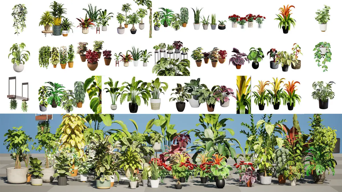 - Realistic Textures: Enjoy high-resolution textures that capture the intricate details of each plant's leaves, stems, and pots.