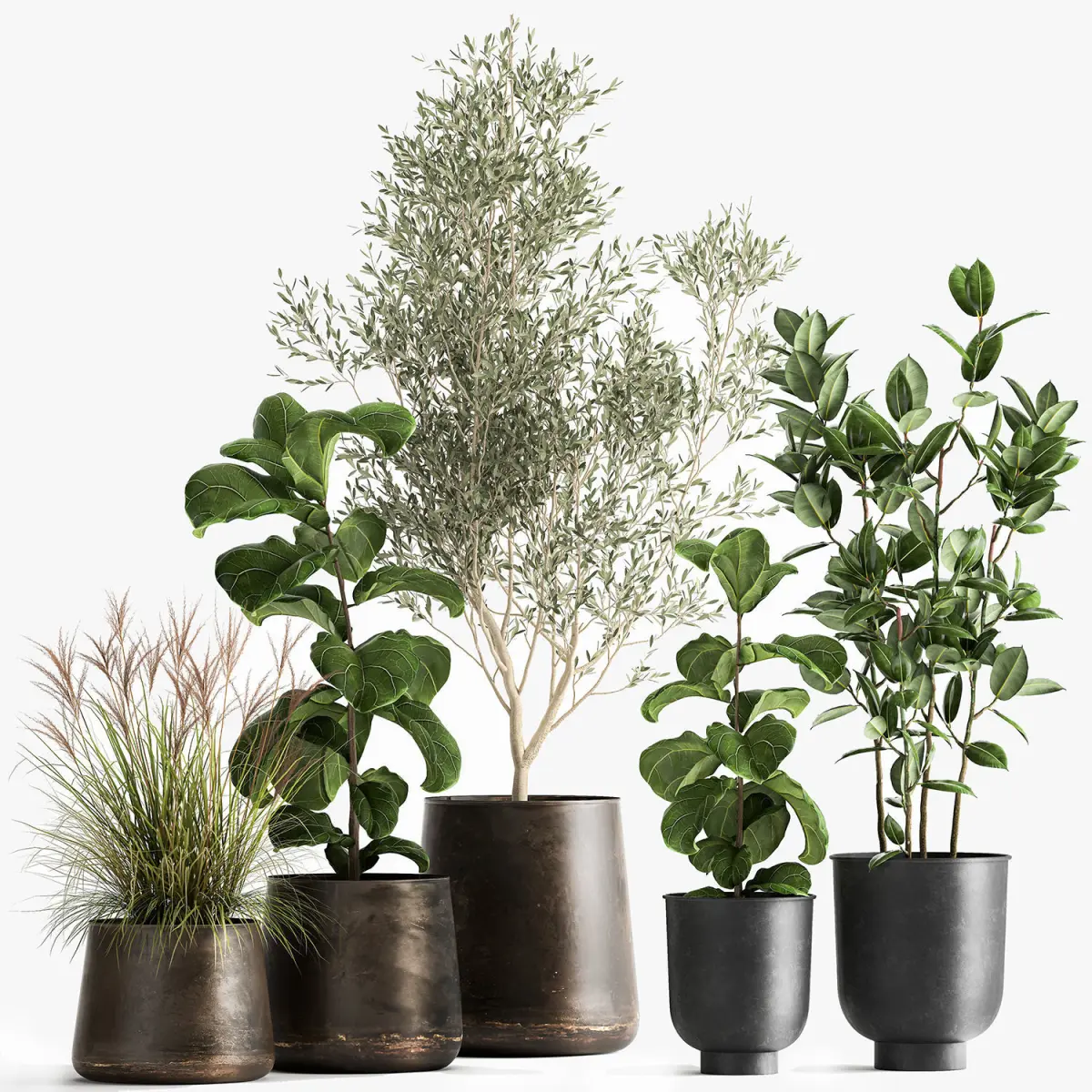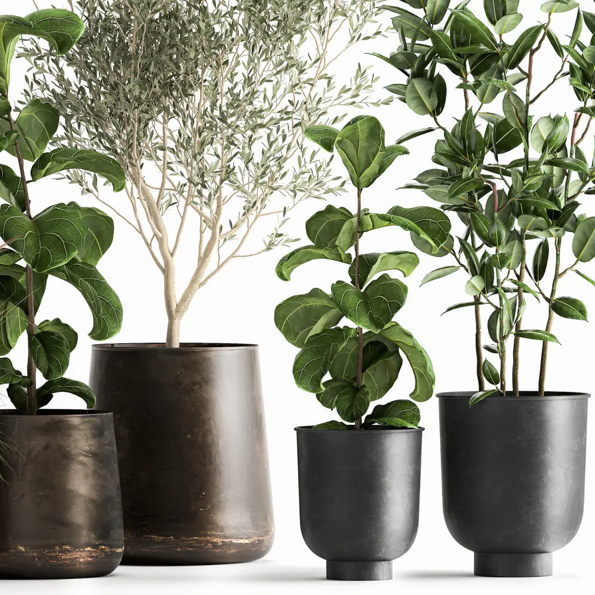 Decorative plants for outdoor and interior in metal pots.Rust, rusty flowerpot.Pot - RECLAIMED ARTIZAN IRON COPPA POTFlowerpot - Vig Planter L Set 2pcs, GrayHouseplantsexotic plantsTropical plantsOleaOlive treePennisetumScirpus - reedsFicus lyrataFicus elastica