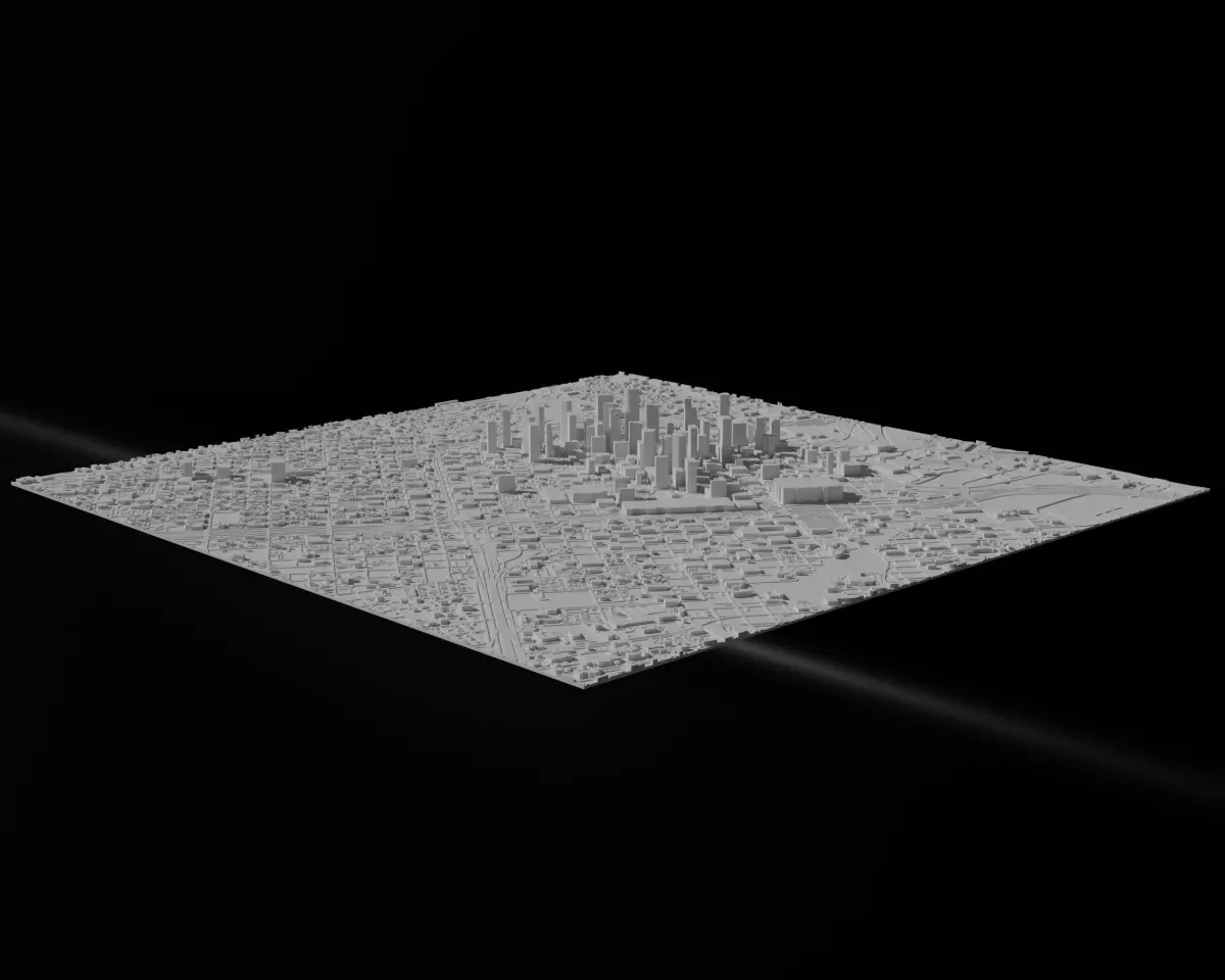 Have you ever wanted to see the complexity and beauty of a city like Houston from a birds-eye perspective? With our high resolution 3d model of Houston you can 3d print yourself a whole city in the span of a few hours. This model is divided into 16 sections for ease of printing, each of which covers 1 km^2 or 0.4 square miles. In Total 16km2 or 6 mi2 are covered by this 3d model of Houston.