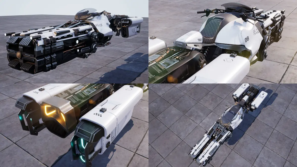 Sci-fi HoverBike for an Android Police Character Unreal Engine ready textures.