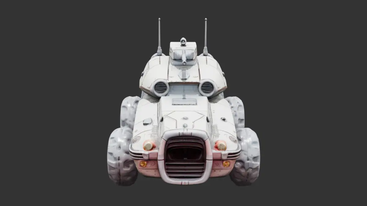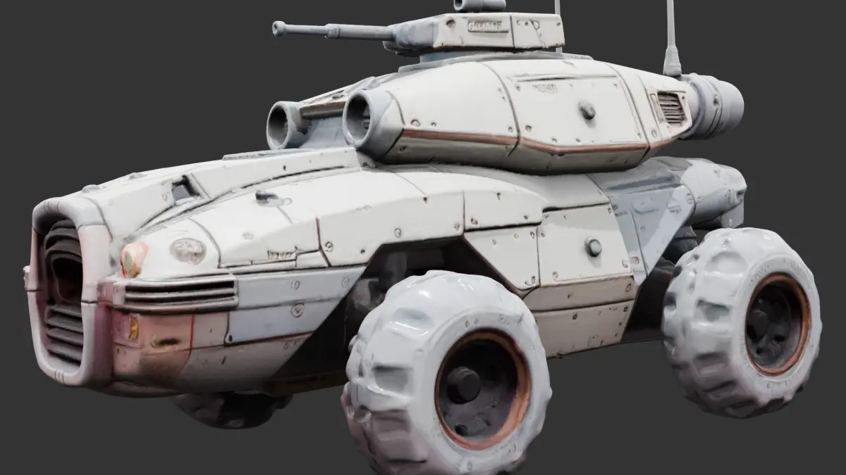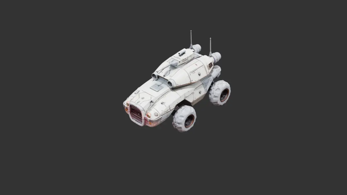 Sci-fi hover tank with plasma turrets and desert battlefield base—designed for speed and power.