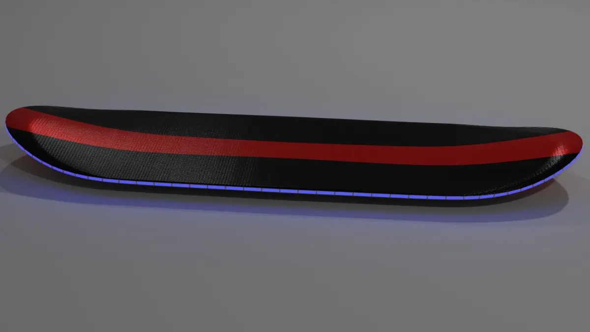 Sci-fi hoverboard, with racing stripe and carbon fiber texture. Lights on the rim. Can be used for cyberpunk or futuristic style games or animations. Textures made on substance painter.