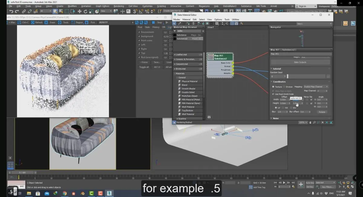 we use photoshop and substance designer to create the fabric material and use 3ds max (render engine corona) to use the texture and learn how to use a sbsar file in 3dsmax. ( using substance plugin)