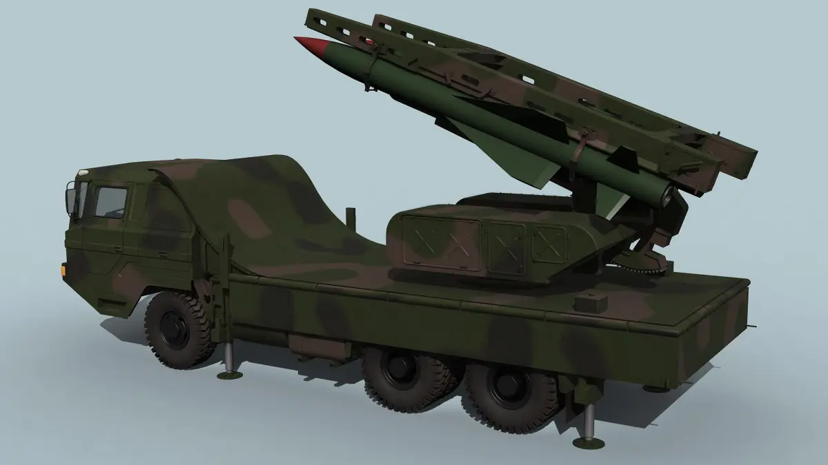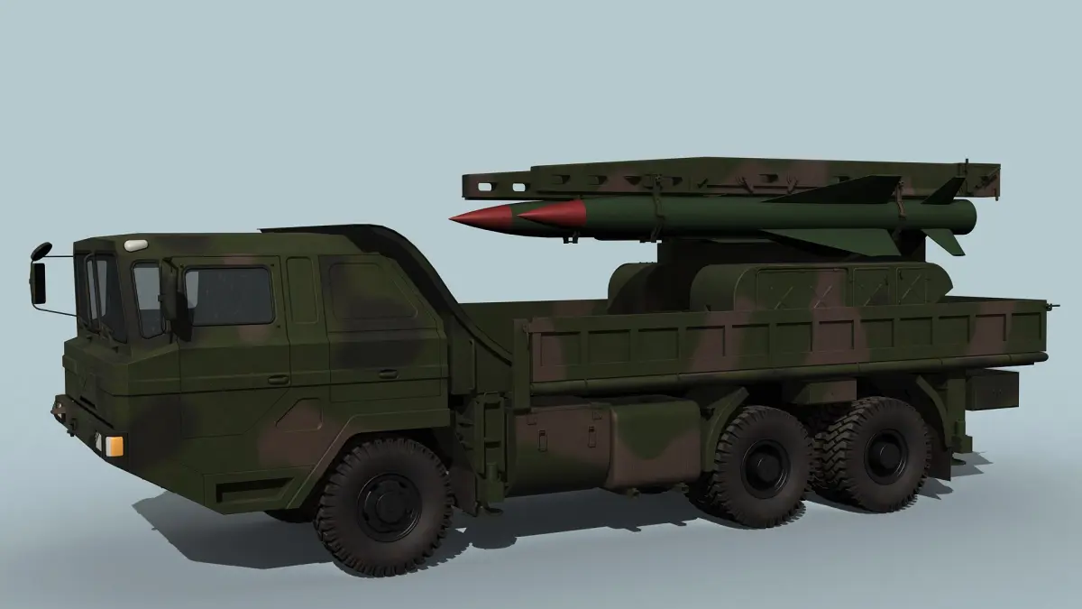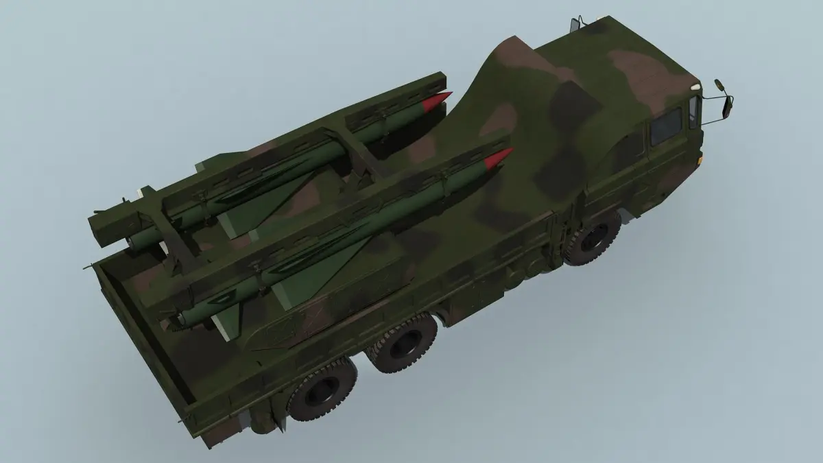 The scene contain two models of the HQ-12 launcher in stowed and deployed positions. This help understand, how the model should look in these positions.
