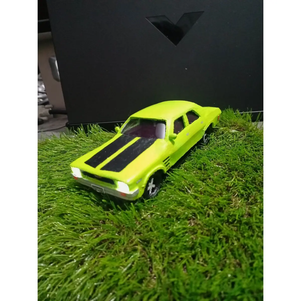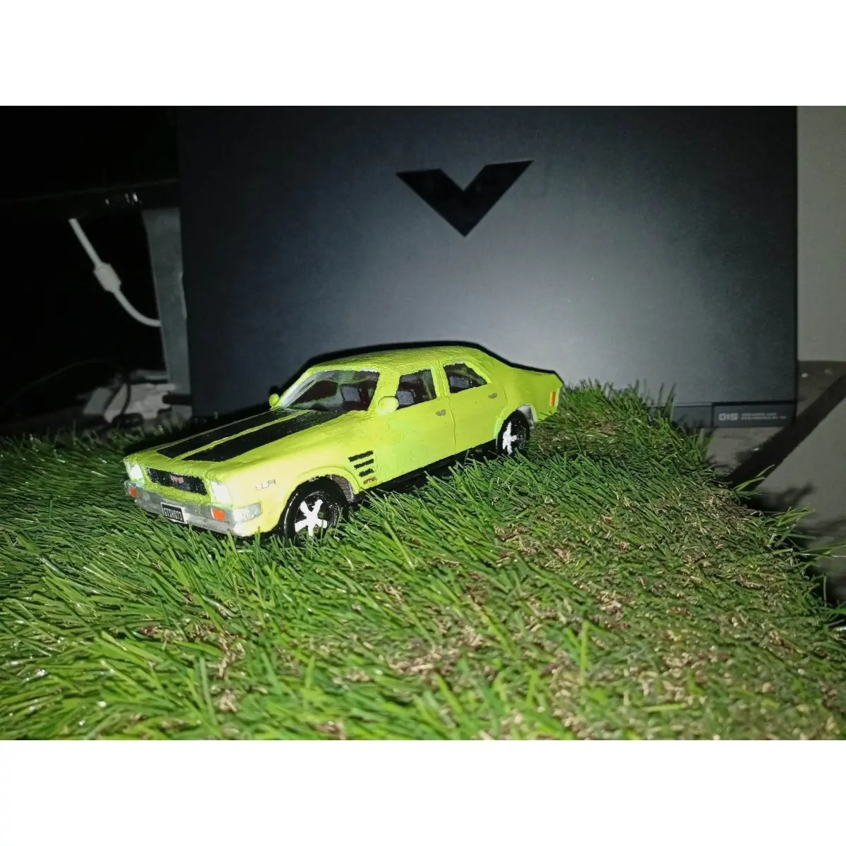 A 3D Printable model of HQ MONARO 1973 4 DOOR VEHICLE with interior and moving wheels.