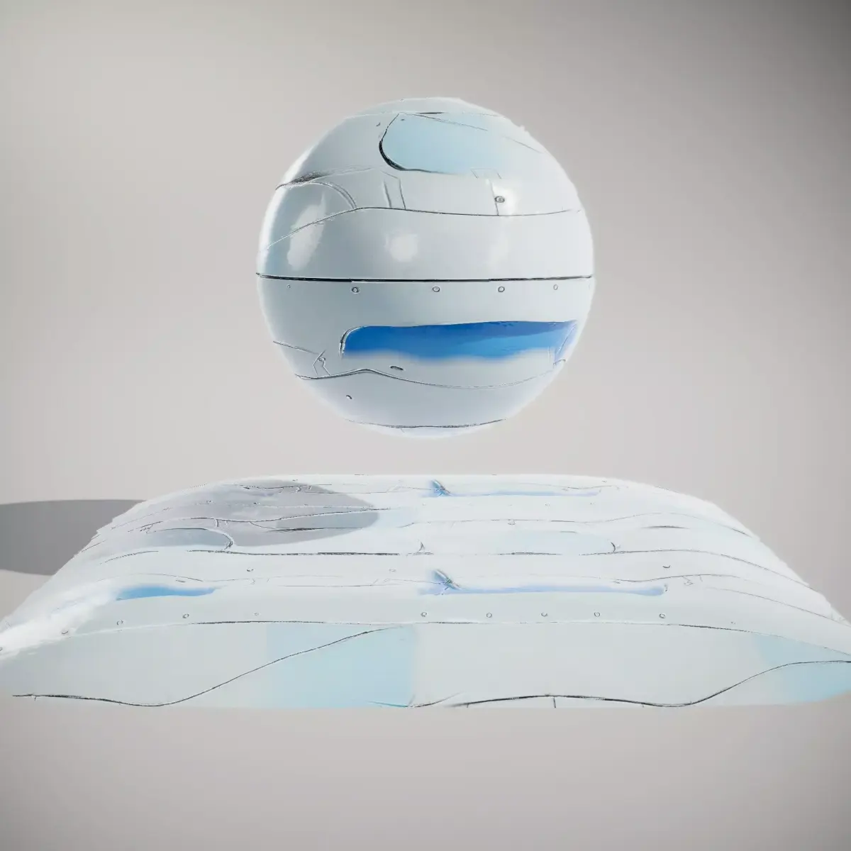 Seamless loop PBR Texture set 4096*4096 px, best for tiling any terrain, wall etc. This texture set features a futuristic material with a smooth, glossy white finish and sleek blue accents, ideal for sci-fi themes. The color palette is predominantly white and blue, giving a clean and high-tech feel. Surface characteristics are smooth and reflective. This set is perfect for applications in games, architectural visualization, and film. Textures are seamless/tileable and PBR-ready, including BaseColor/Albedo, Normal, Roughness, Metallic, AmbientOcclusion, and Height/Displacement maps. Resolution is 4096x4096 in standard PNG/JPG formats, compatible with Unreal, Unity, Blender, 3ds Max, and Maya. Like and comment if you find this useful.