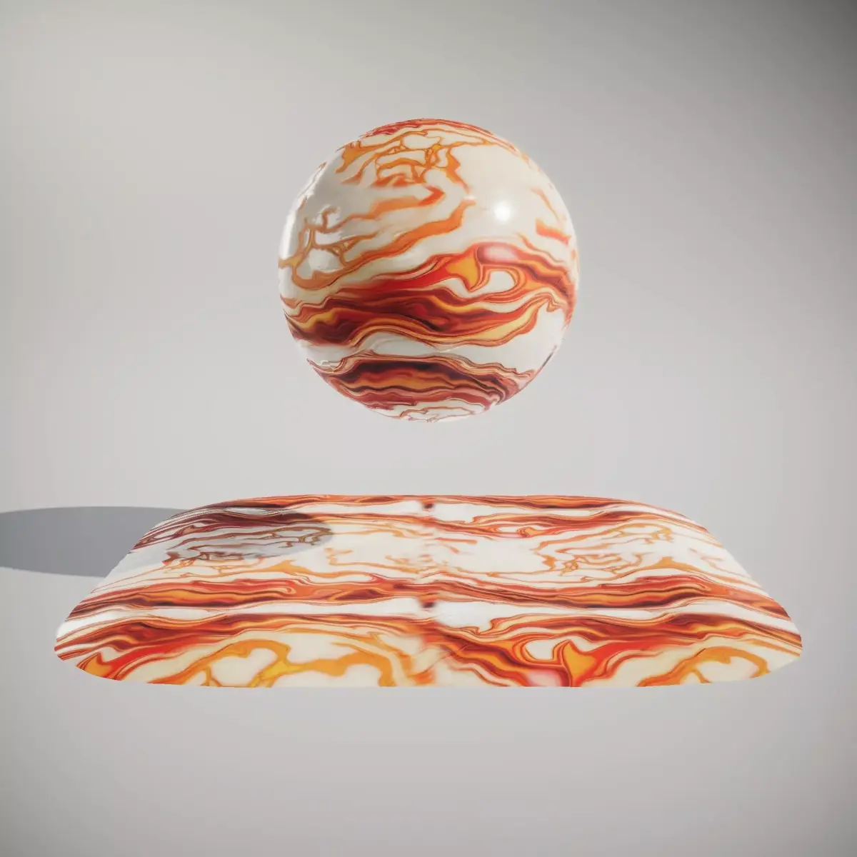 Seamless loop PBR Texture set 4096*4096 px, best for tiling any terrain, wall etc. This HQ PBR Textures Set features a stunning marble texture with vibrant orange veining. The color palette includes warm white tones with rich orange and red swirls, creating a dynamic and luxurious effect. The surface is polished and glossy, perfect for high-end architectural visualization and interior design. Textures are seamless/tileable and PBR-ready. Included maps: BaseColor/Albedo, Normal, Roughness, AmbientOcclusion, and Height/Displacement. Resolution: 4096x4096 in standard formats (PNG/JPG). Compatible with modern engines and DCCs like Unreal, Unity, Blender, 3ds Max, and Maya. If you find this texture useful, please like and comment.