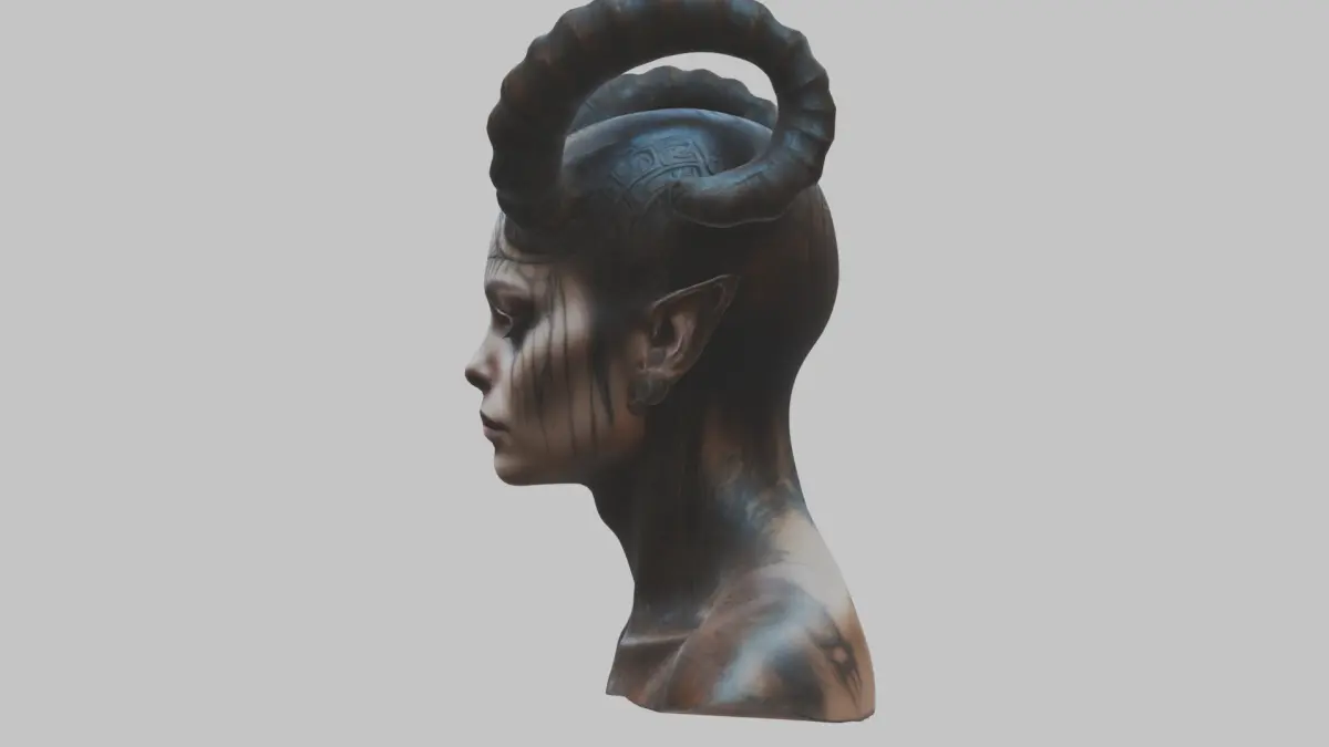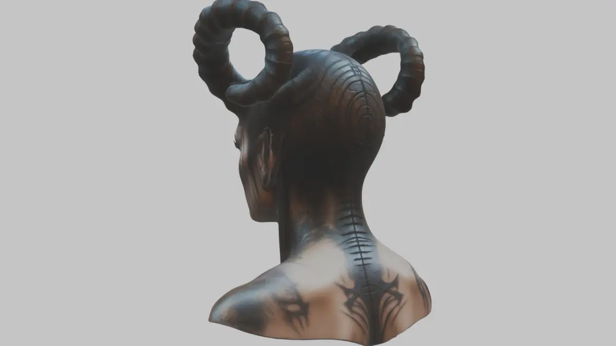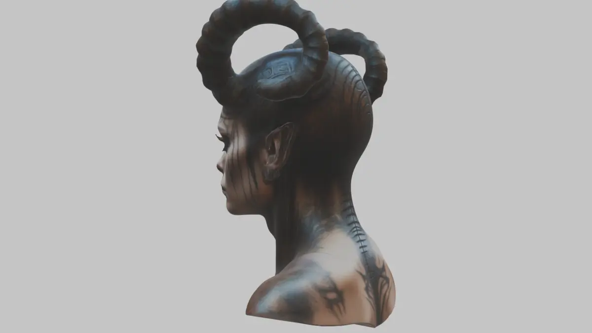 HomeCatalogHR Giger Woman Scifi Head Bust Alien Horns Low-poly 3D model