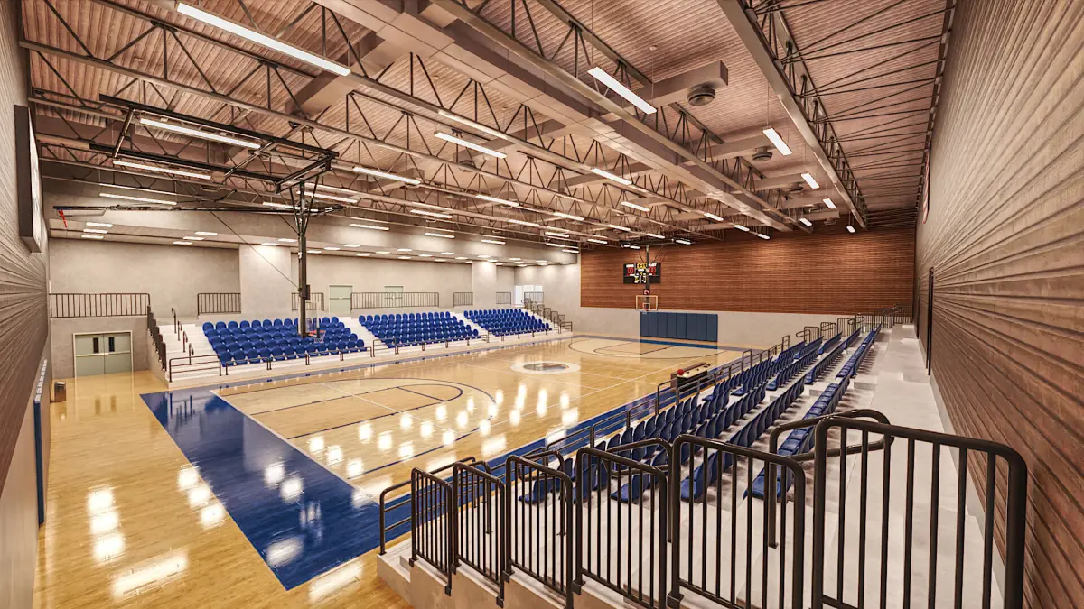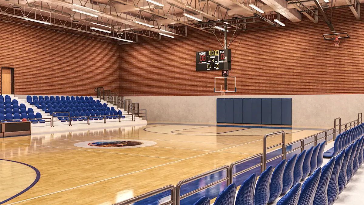 The High School Basketball Gym Base is the perfect facility for sports training, school assemblies, or simply having some fun with friends. With everything you need to improve your fitness and coordination, this gym is suitable for basketball, volleyball, and a variety of other sports activities.