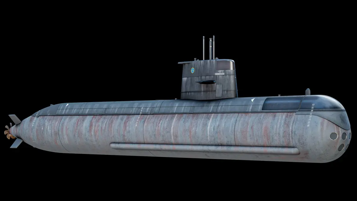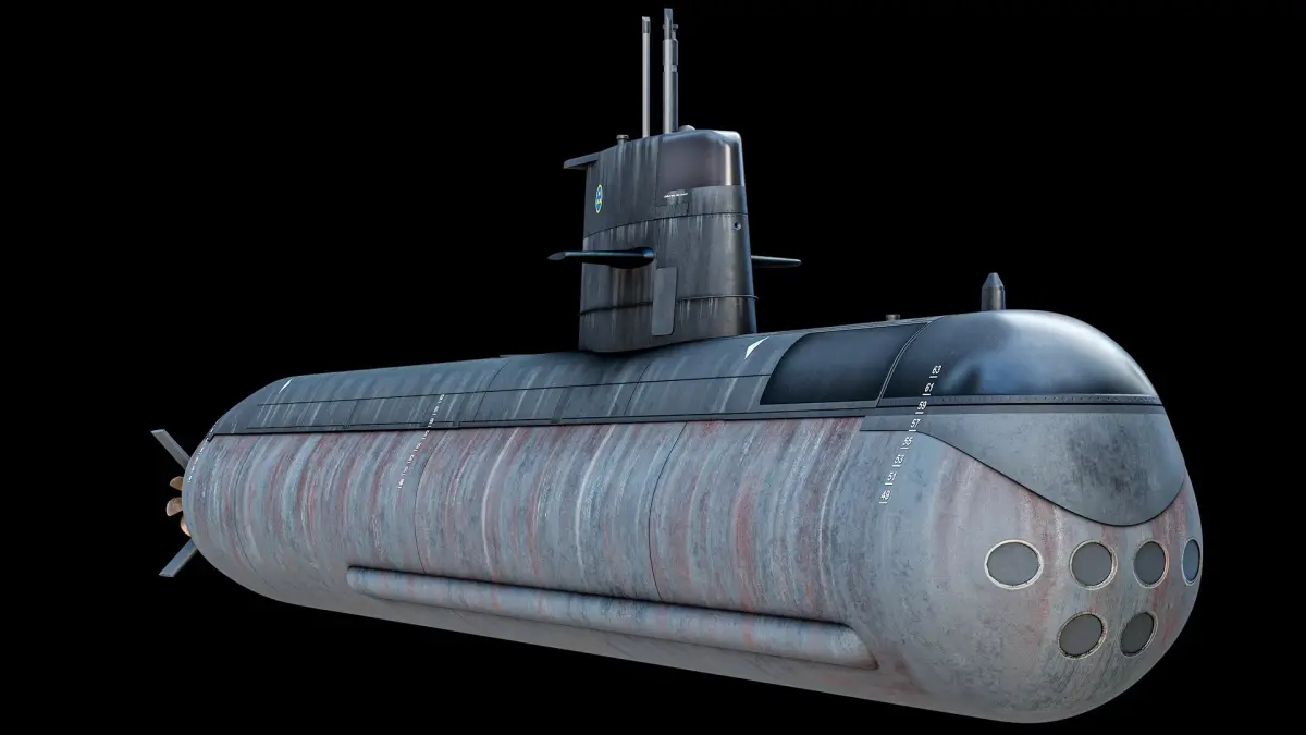 Super realistic high detailed HSwMS Gotland Military Submarine 3D Model with high resolution textures and PBR maps.