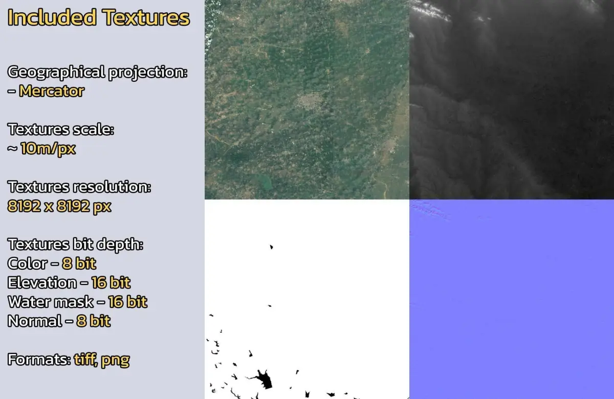 Warning: minor clouds/artifacts may be present on the diffuse color satellite texture due to the nature of the dataset. Check product images.