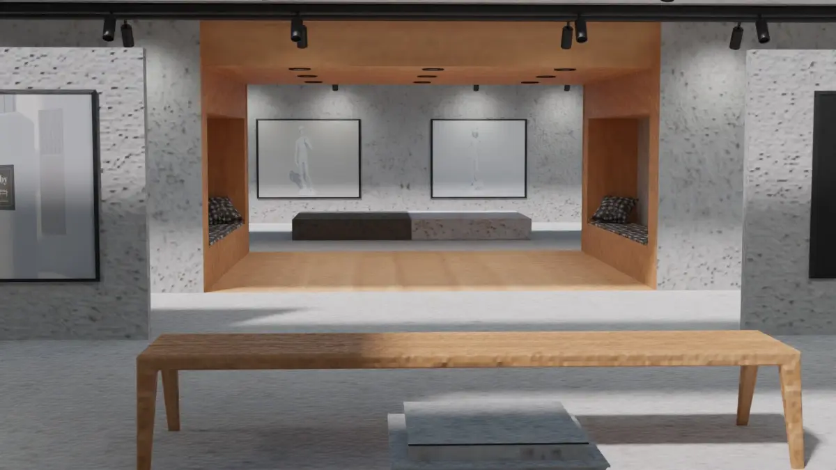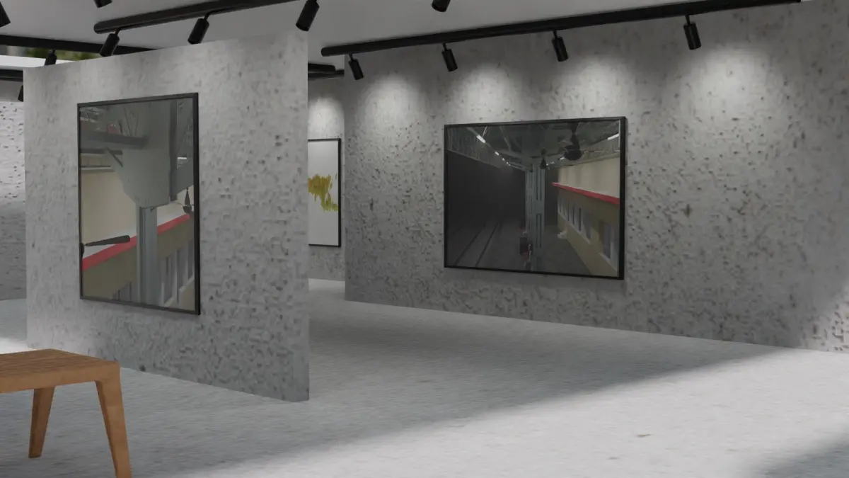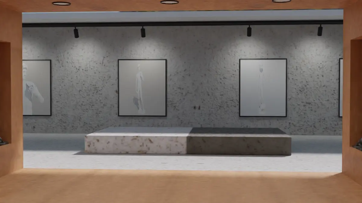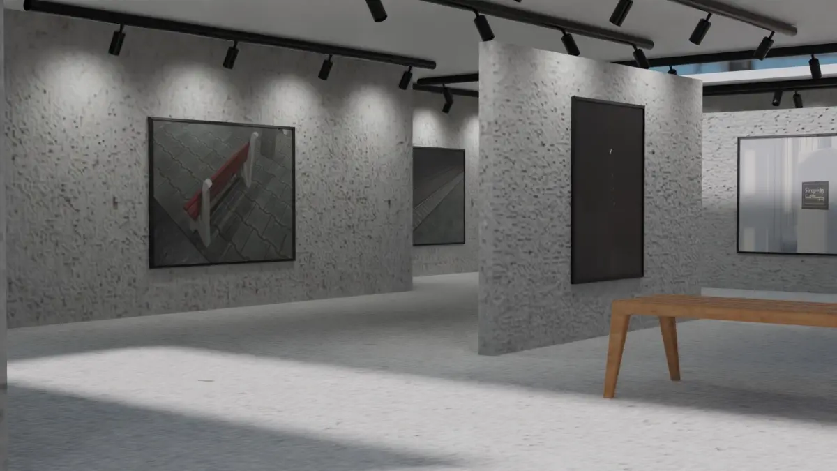 Huge Vr gallery low poly model 60 pictures,174 lights,2 chair, 2 box sitting's
