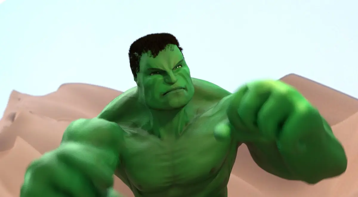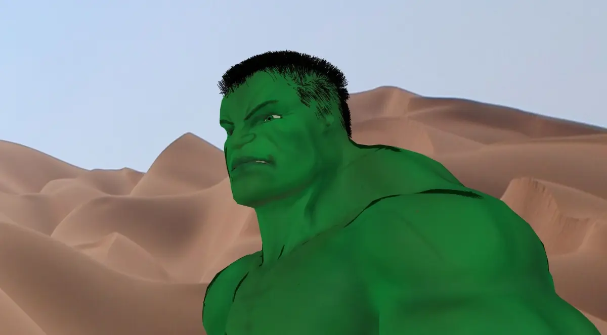Growing up reading the classic comics, watching the movies, I've always been a big fan of the green giant. This model was really fun to create, I'm a big fan of the 2003 design, so I implement some of the color schemes of that hulk, with also my own look of him. This Green beast comes fully rigged and animated with motion capture data. If you have any questions, feel free to ask anytime!-Screenshots were rendered with Blender Cycles Render Engine-This Model comes with..-Animated ready: This mesh includes an fbx animation folder, with mo-cap animations that include: running, walking, punching and jumping attack animations -Shape keys: For easy control of mouth, eyes, and muscle movements-high quality painted texture maps 2048/2048-Exellent lighting setup (Blender Cycles)-Desert Landscape plate included