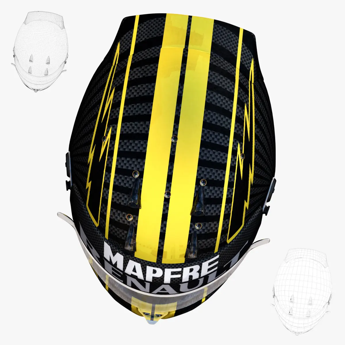 This is a 3D low poly model ,it was designed to provide a high definition in a low poly. Standard low-poly mesh with specific poly count. It`s the most accurate and realistic of the market. This is a recreation of a F1 Helmet model,it can suffer modification over the season. The model is completely ready for use visualization in maya. For low poly model simply press 1 and for the high resolution press 3. In Cinema4d go to function menu and subdivide. In 3dmax meshsmooth In the low poly: Poly count : 5845Vertex count : 6200In the smooth version: Poly count : 93512Vertex count : 94888Textures included. Each texture is in jpg format and have a 4K texture resolution for high quality It has color texture Because of different Disk topology at different computers it might be required to change the textures path at the destination computer. The 3D model was created on real base. It's created accurately, in real units of measurement, qualitatively and maximally close to the original.