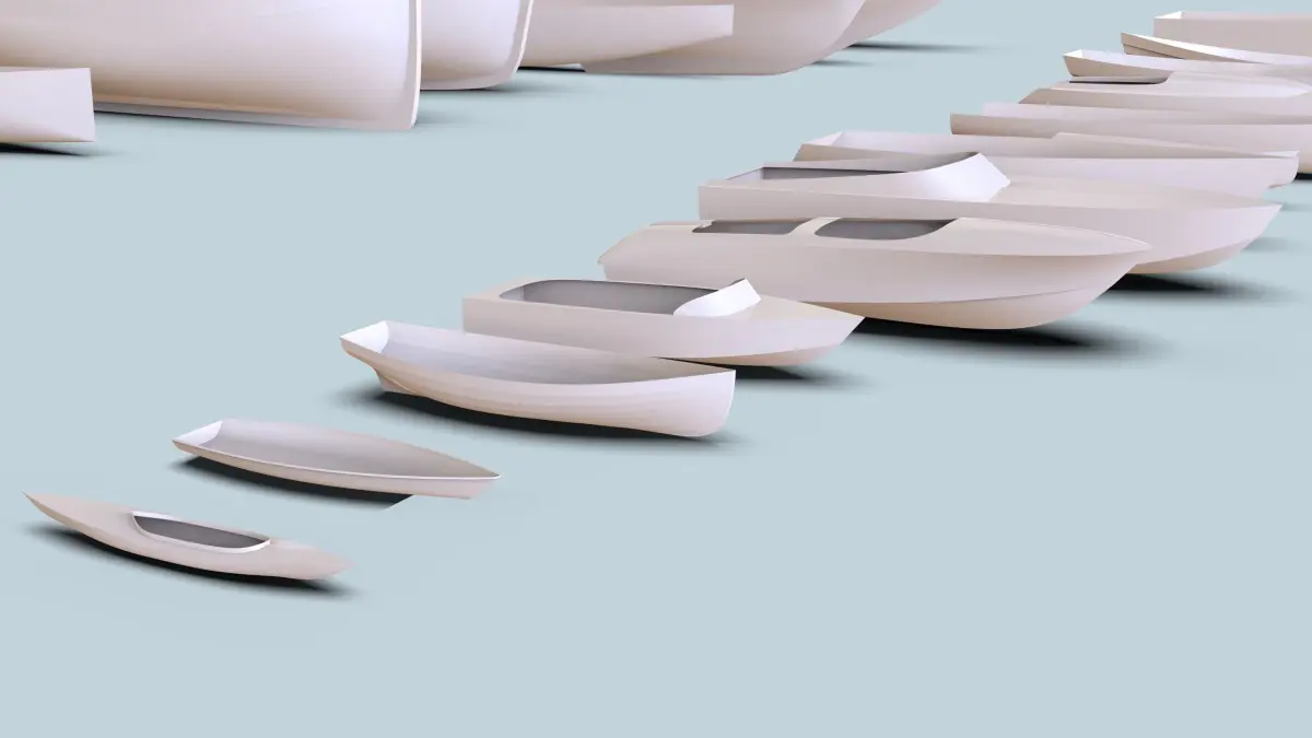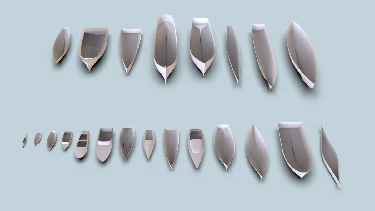 Collection of 22 hulls, the models were made with Rhino 7.