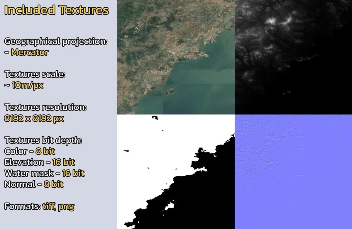 - Textures resolution: ~10m/px