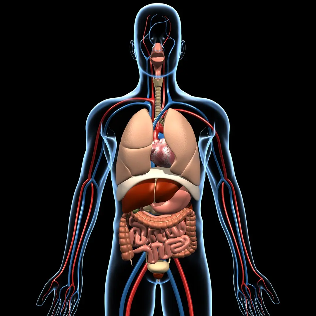 2. A transparent human model is included to give a sense of the organ's location, without cluttering the important details inside.