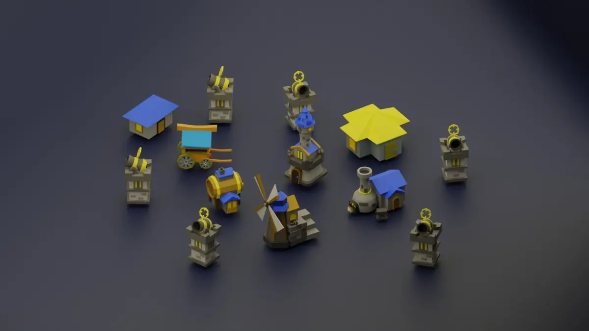 Hello! This is a little work with the basic buildings for the game (strategy, RTS, etc.)There are two color options - blue and red, but if desired, more can be added to the texture, removed all unnecessary polygons and optimized as much as possible.Please leave a review! It will help me to create even more product and please you! Creativity to you!