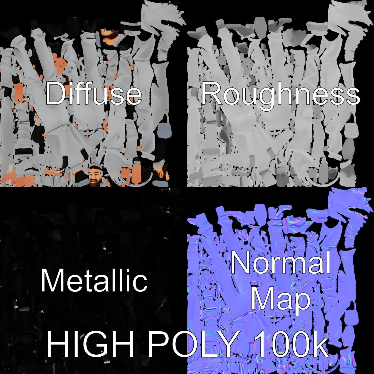 The model is designed with high-quality PBR textures, including Diffuse, NormalMap, and reflection/roughness/metallic textures, ensuring compatibility with all modern rendering engines such as 3ds Max, Maya, and Blender. The textures are 4096x4096 in size, providing high resolution for close-up renderings.
