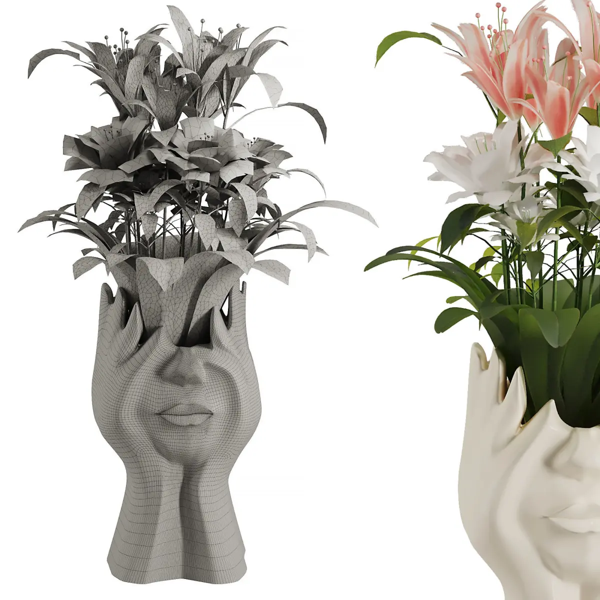 Name: Human_Face_Bouquet_V1Version: 2016Units: cmDimension: 53 x 53 x 85Polys: 66461Verts: 70314Render: Corona_vrayFormats: 3Ds Max 2016, FBX
