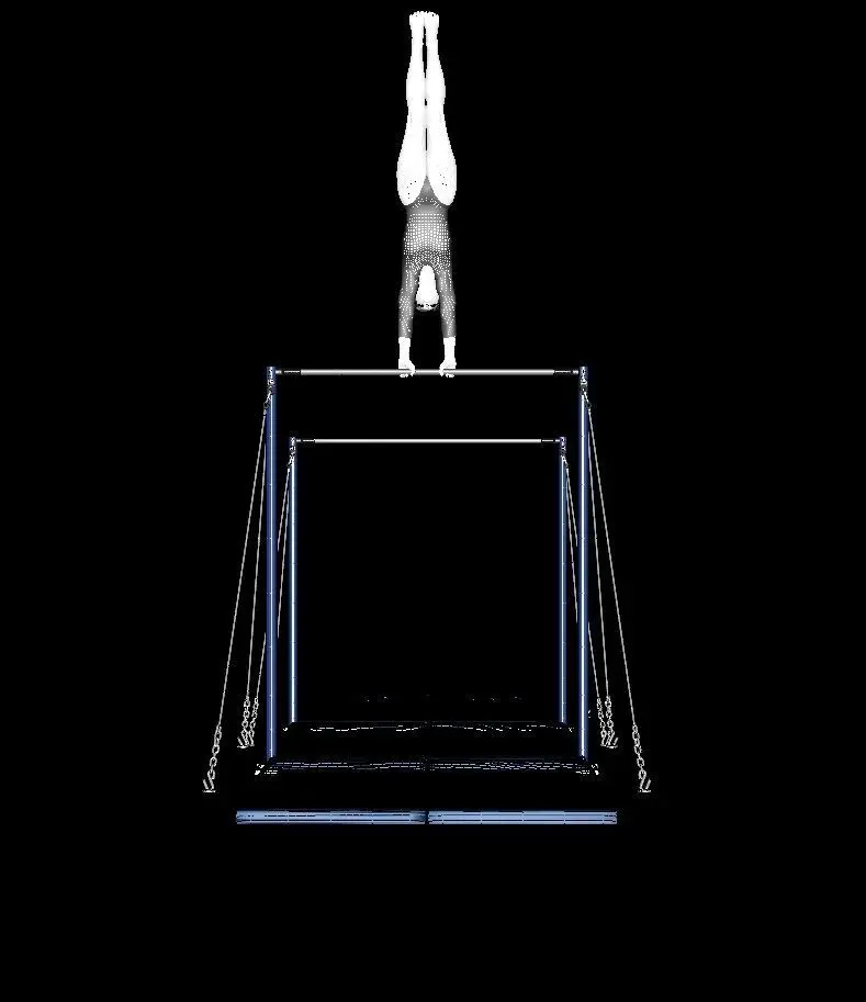 Human gymnastic uneven bars model preforming swing