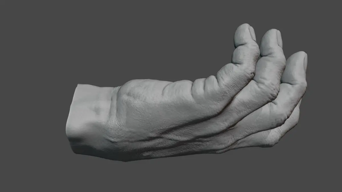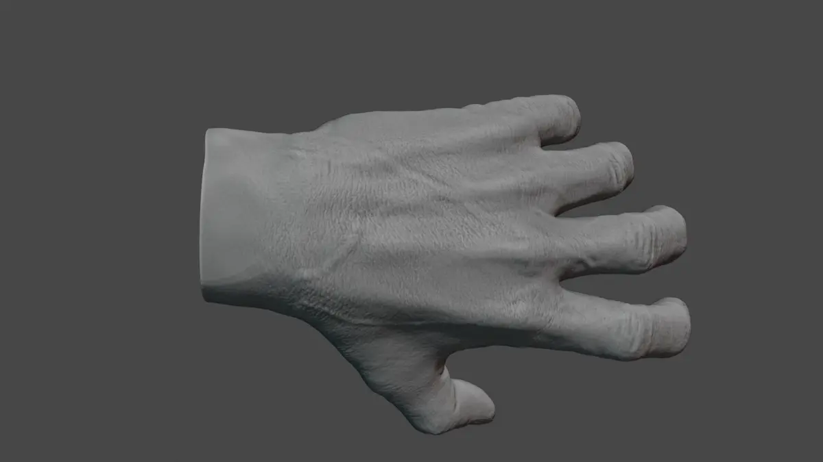 Rigged 3d hand. Made ib Blender. Rigged with bones. Inverse Kinematic IK is made. You can edit its pose. Has no textures. Is ready for your scenes. 596 759 vericales. 1 200 065 edges. 603 318 faces.