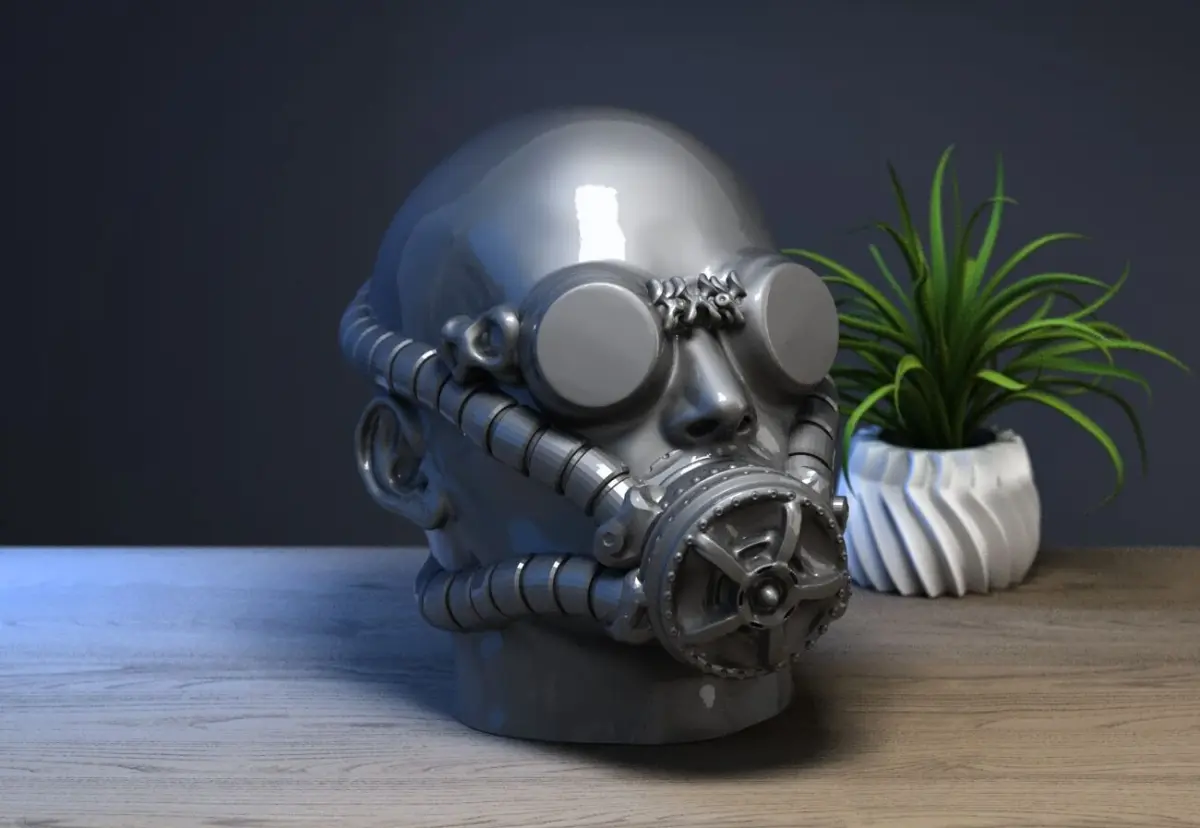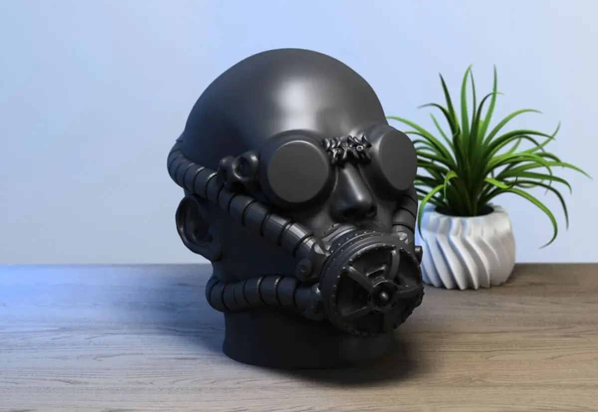 Human head with mask headdphone Stand, Cyborg Headset Stand, Perfect Gamer Gift, Sci-Fi Fans Gift, Human head mask Headphone Holder, a390 (7)