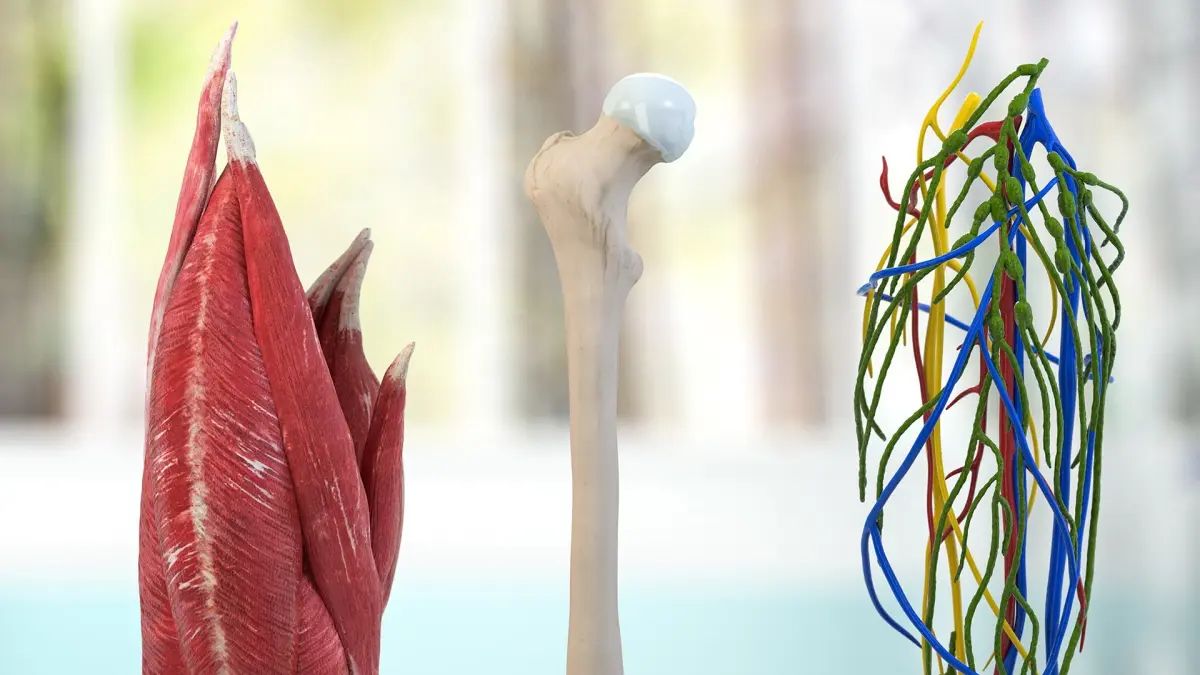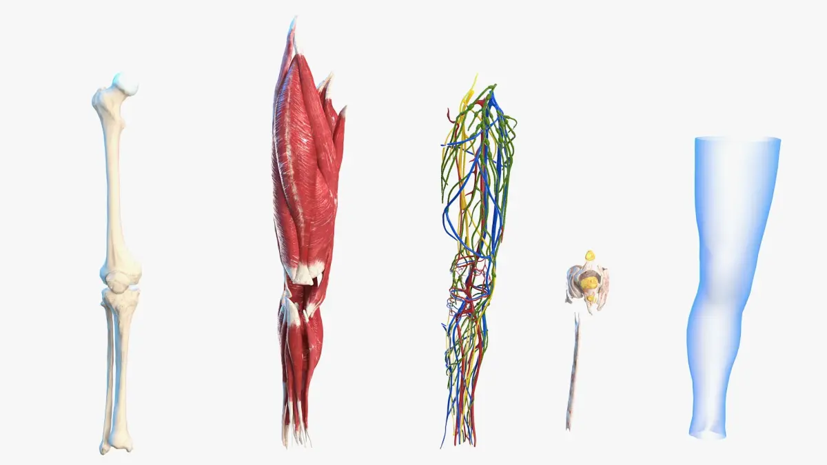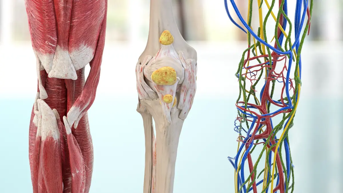 Human Knee Joint Anatomy Rigged structure with elements of Cardiovascular System, Nervous System, Muscular System and Lymphatic System.