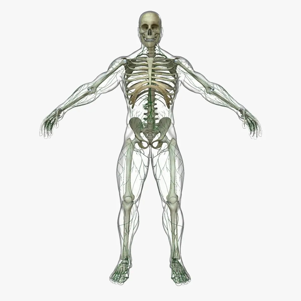==FEATURES==Detailed Lymphatic system with full body skeleton-X-Ray Shader for the Skin (Ready to render exactly as shown)-Each bone is select-able and named / grouped properly for easy organization-Real World Scale (6 feet 2 inches, 1.89 meters, 74.6 inches)-Displacement map for extreme detail-Clean edge-loop based topology-Light set up ready to Render-Maya 2015+ compatible