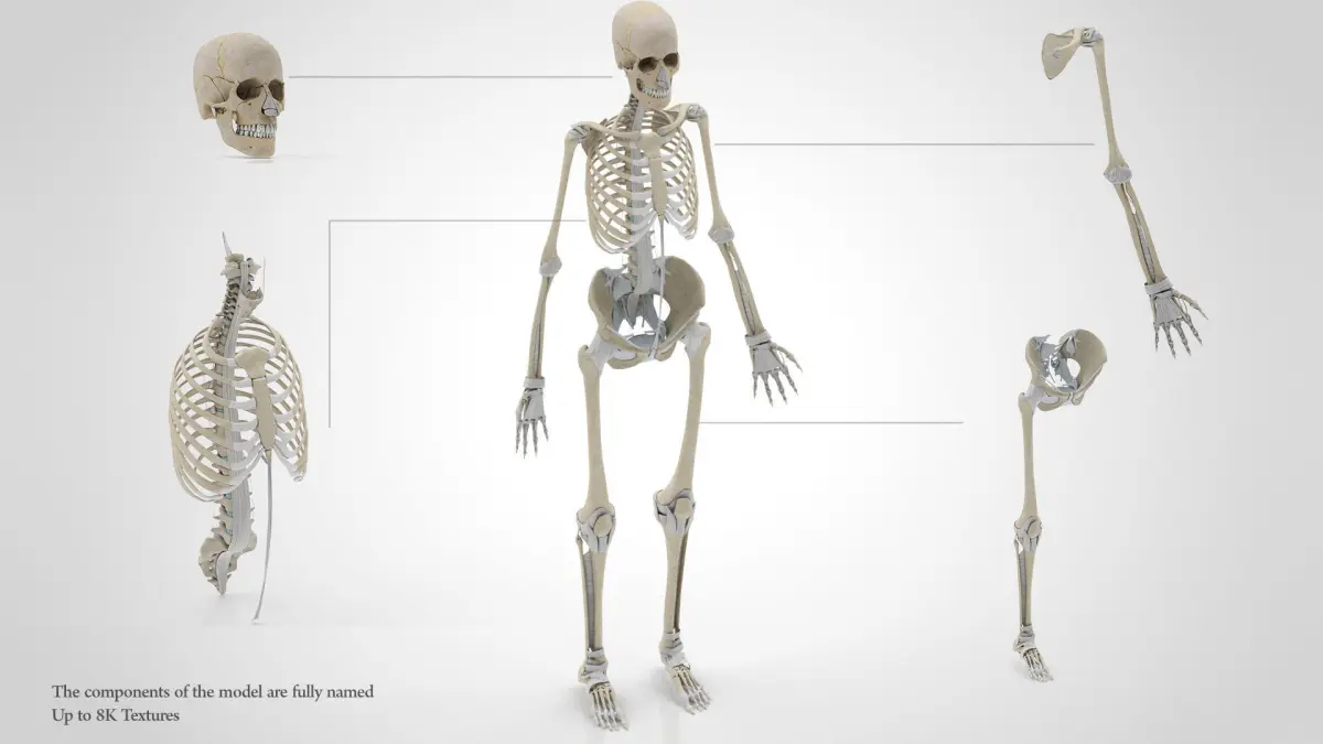 Human skeleton with Ligaments is a high quality, photo real models that will enhance detail and realism to any of your rendering projects. The model has a fully textured, detailed design to 8K that allows for close-up renders, and was originally modeled in 3ds Max 2014 and rendered with V-Ray