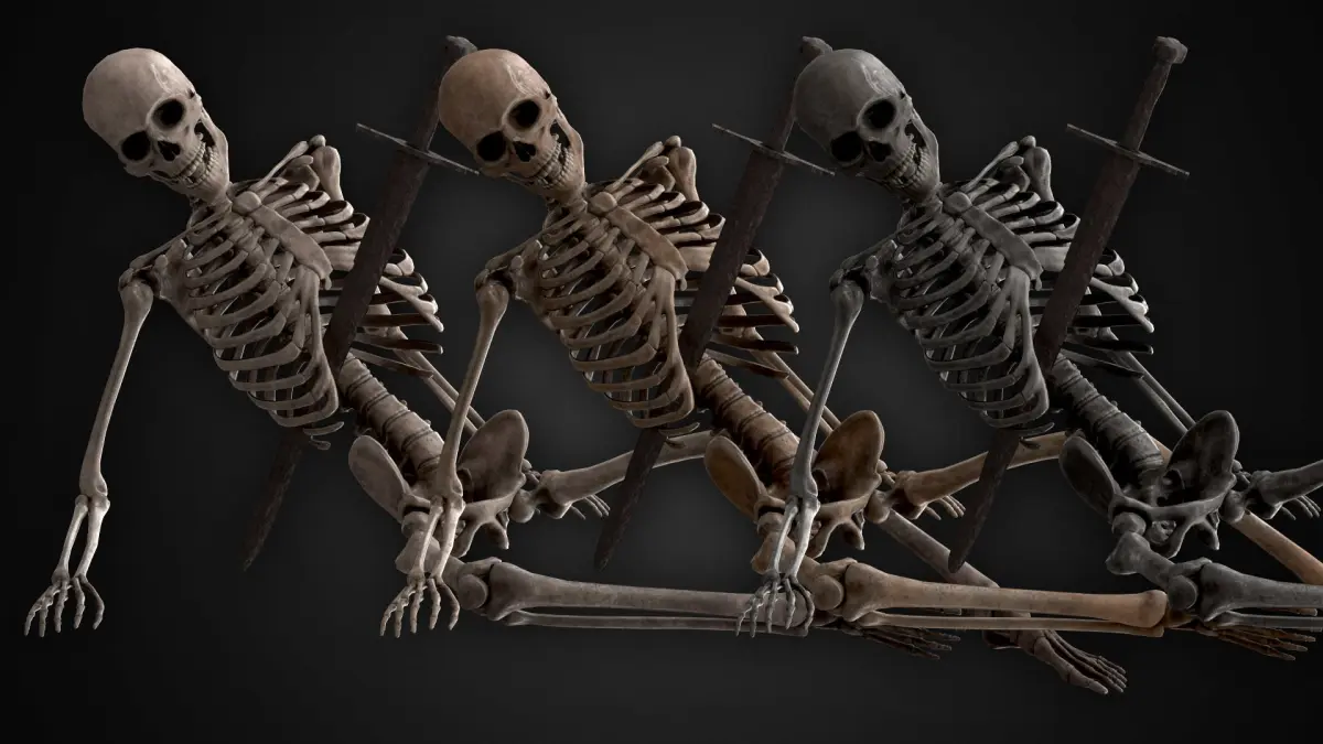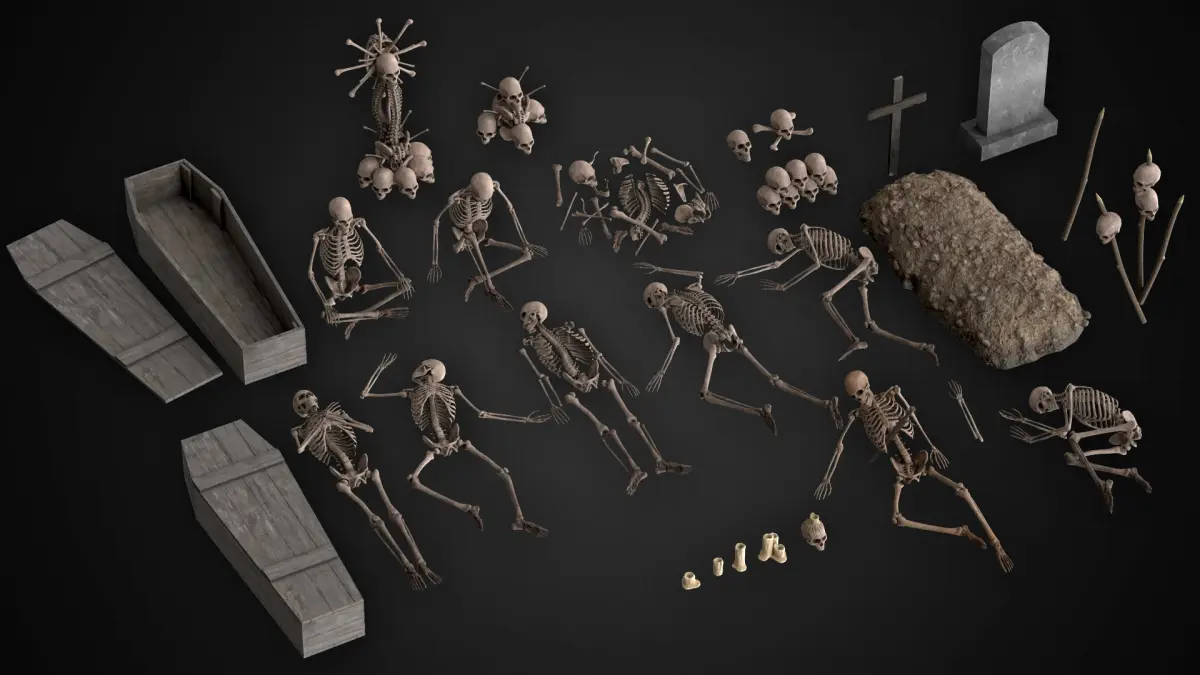 High-quality realistic low-poly 3D models of human skeleton and bones ready to use in environment