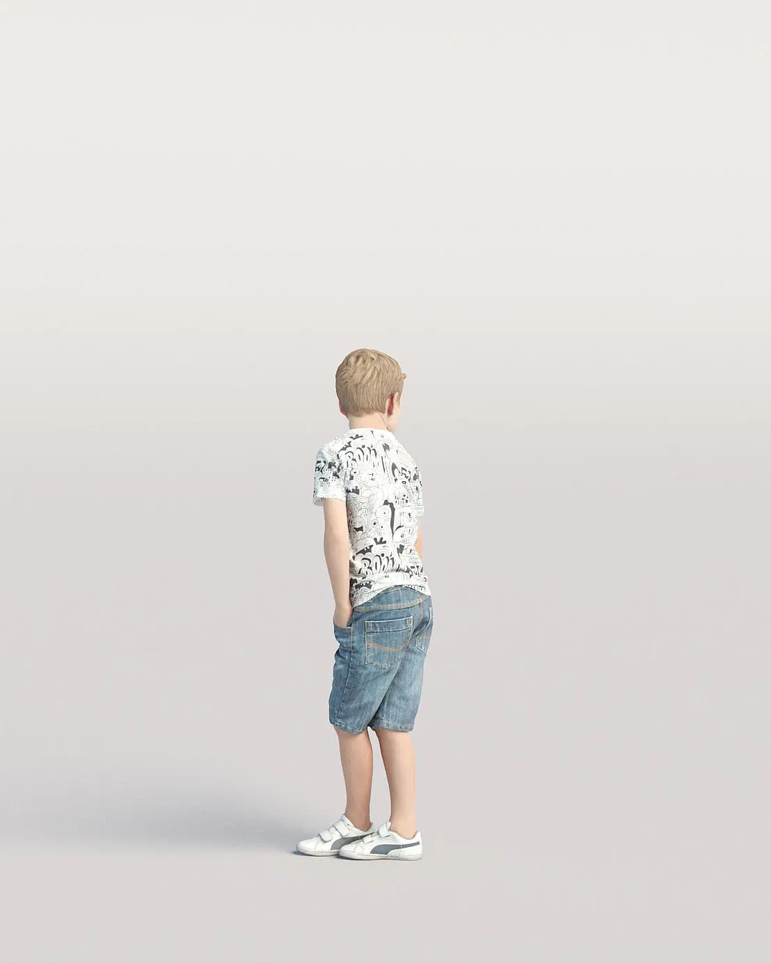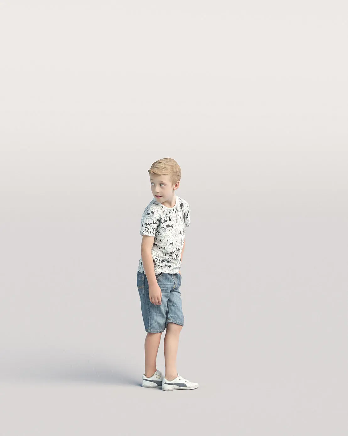 Naturally looking 3d posed model with high quality mesh and textures. Each model comes with realistic blend material (100k), optimized simple material (30K) and 4 different color variations.