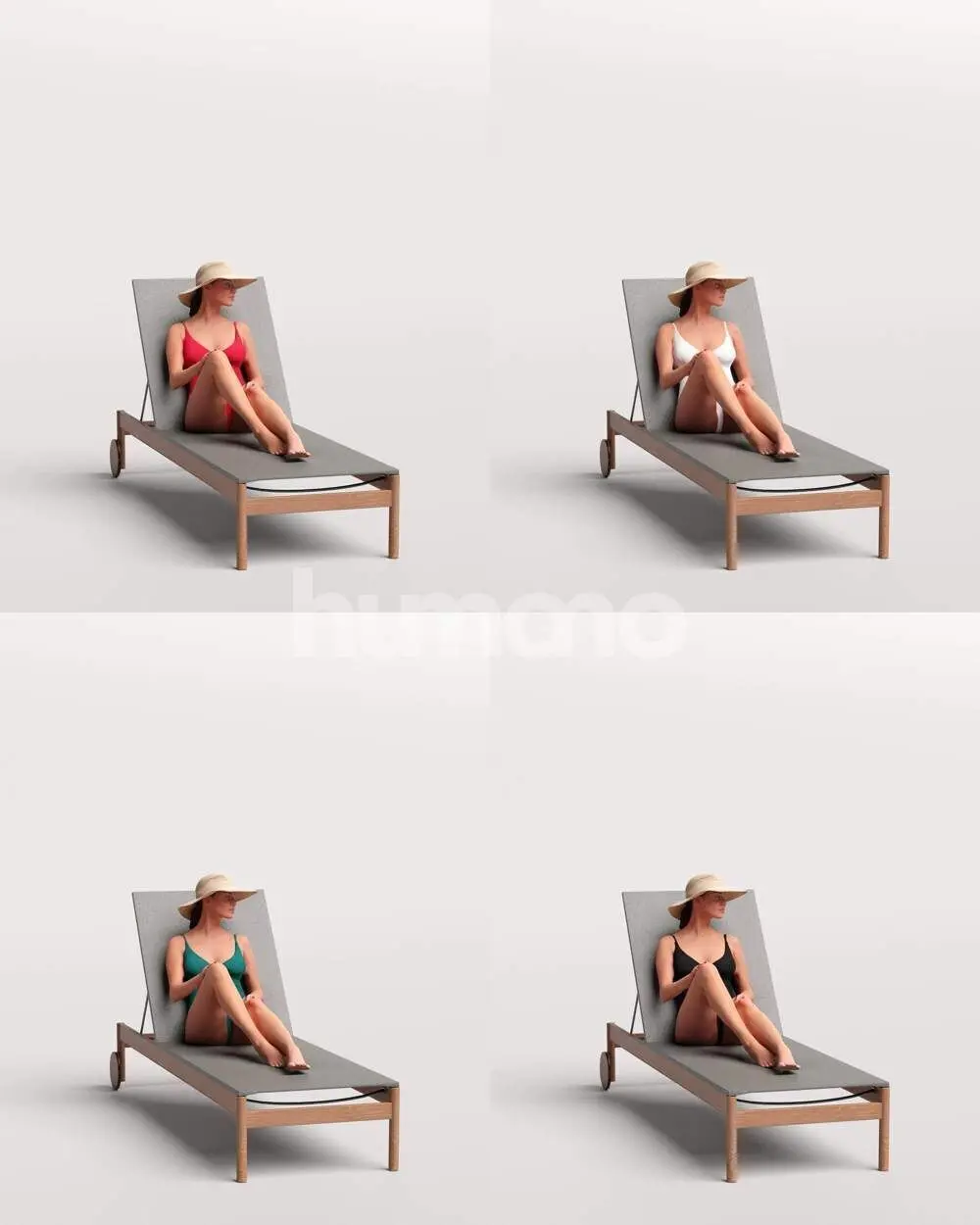 Humano Woman in swimsuit hat sitting sunbed pool-2511-050-7489 3D model