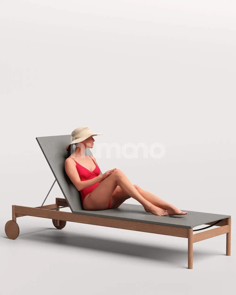Home Catalog Humano Woman in swimsuit hat sitting sunbed pool-2511-050-7489 3D model