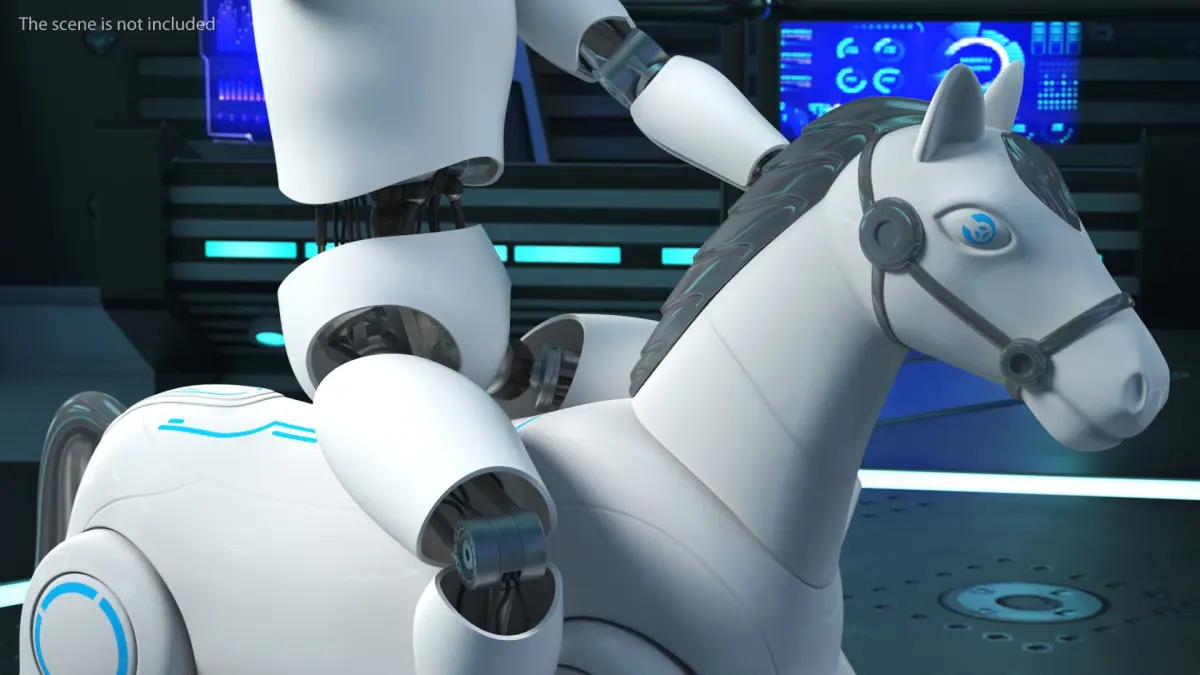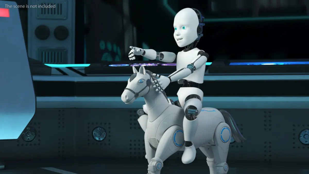 Humanoid Cyborg Child Riding Robotic Horse is a high quality, photo real 3d model that will enhance detail and realism to any of your rendering projects. The model has a fully textured, detailed design that allows for close-up renders, and was originally modeled in 3ds Max 2020 and rendered with V-Ray. Renders have no postprocessing!